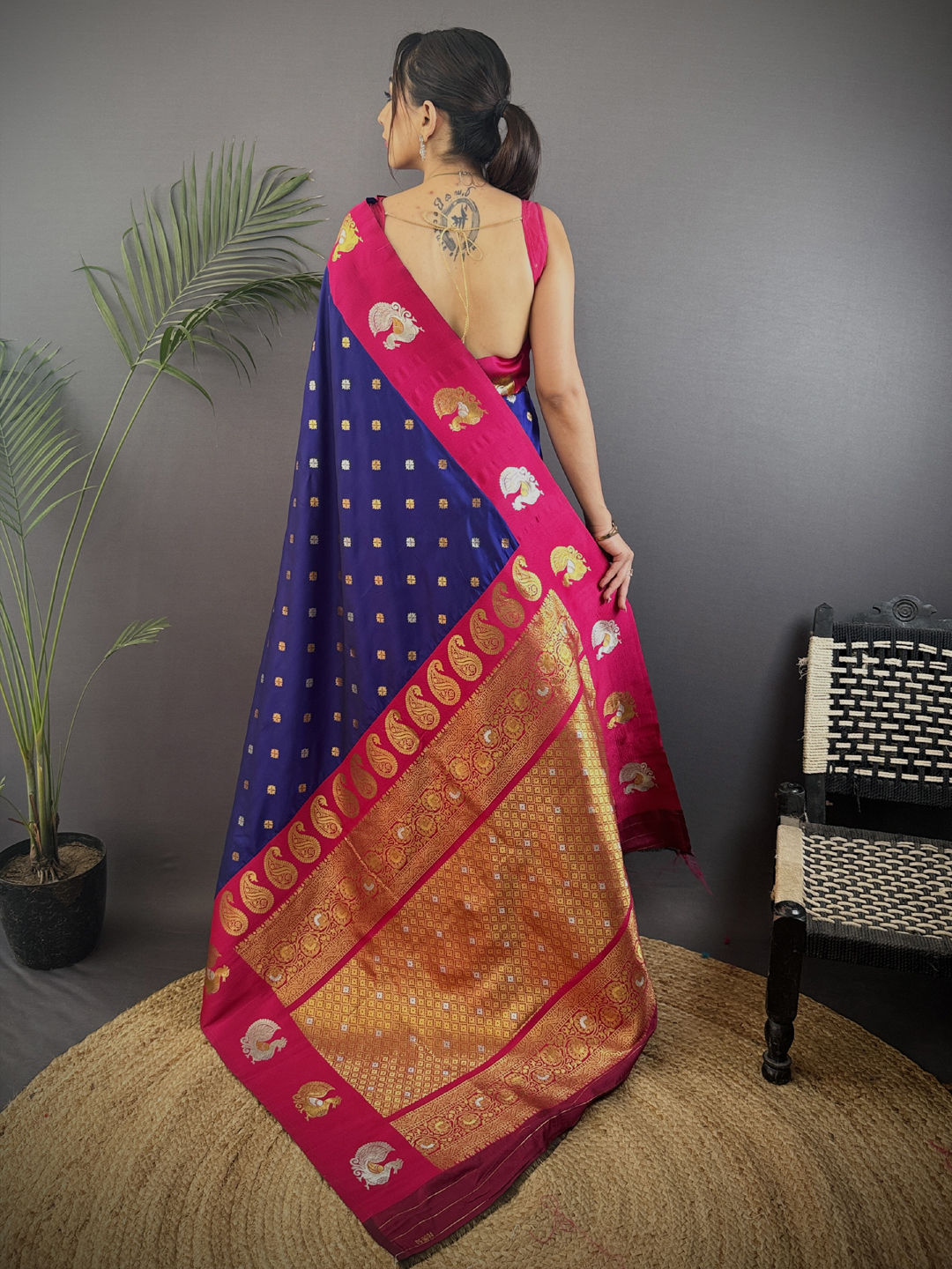 in Blue with Weaving work