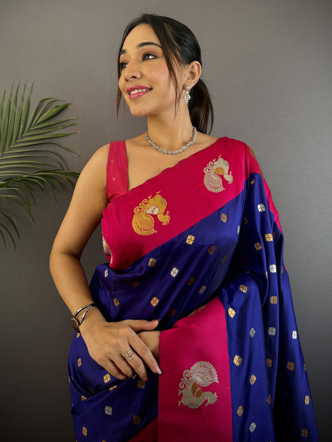 Banarasi Silk Festive Saree in Pink and Majenta with Weaving work
