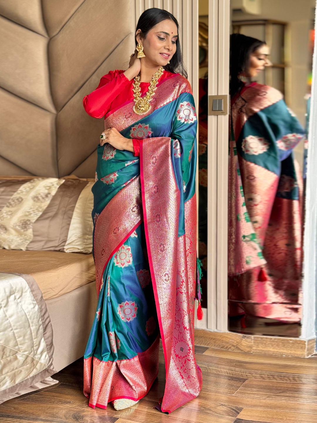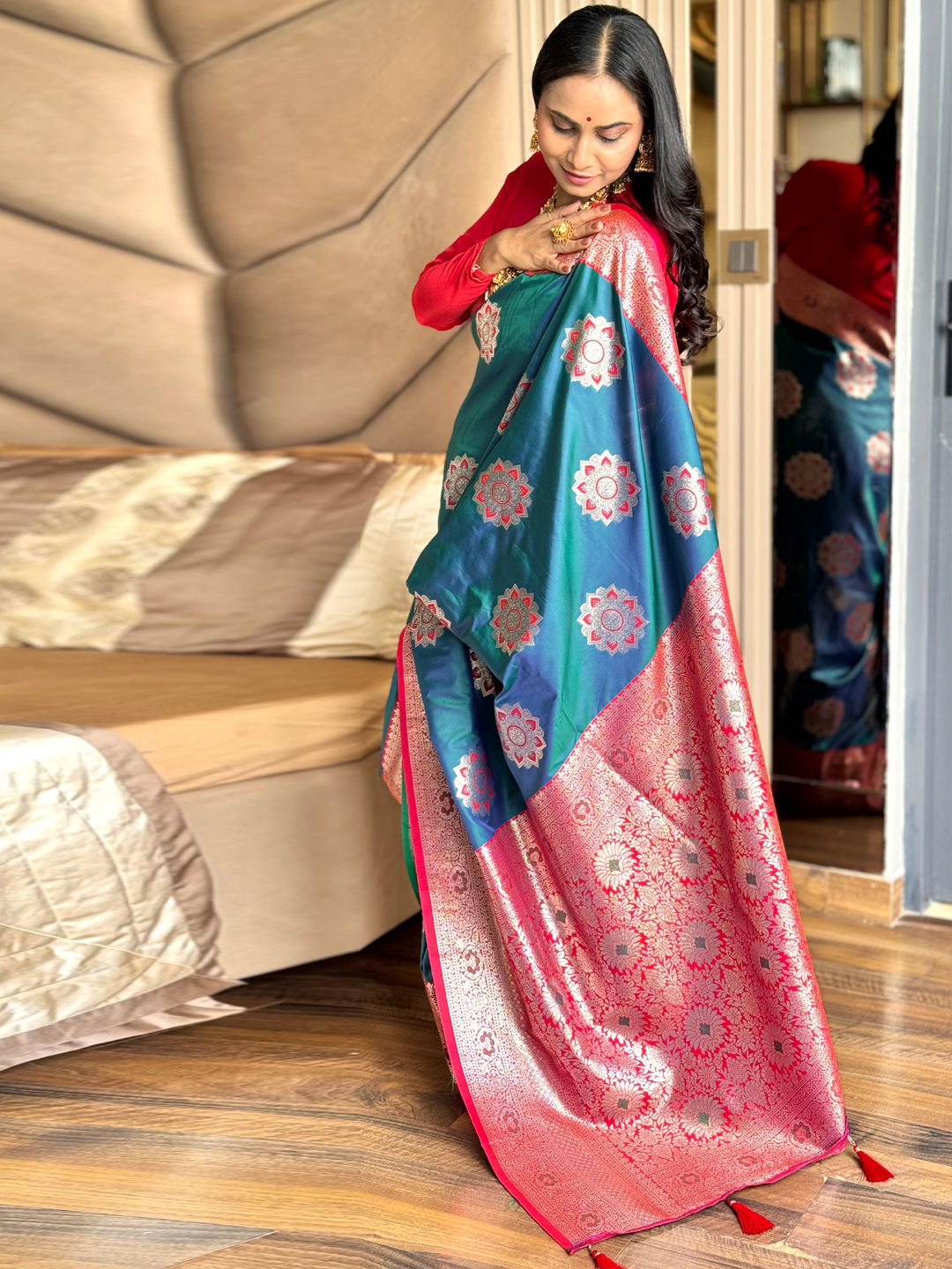 Banarasi Silk Traditional Saree in Green with Weaving work