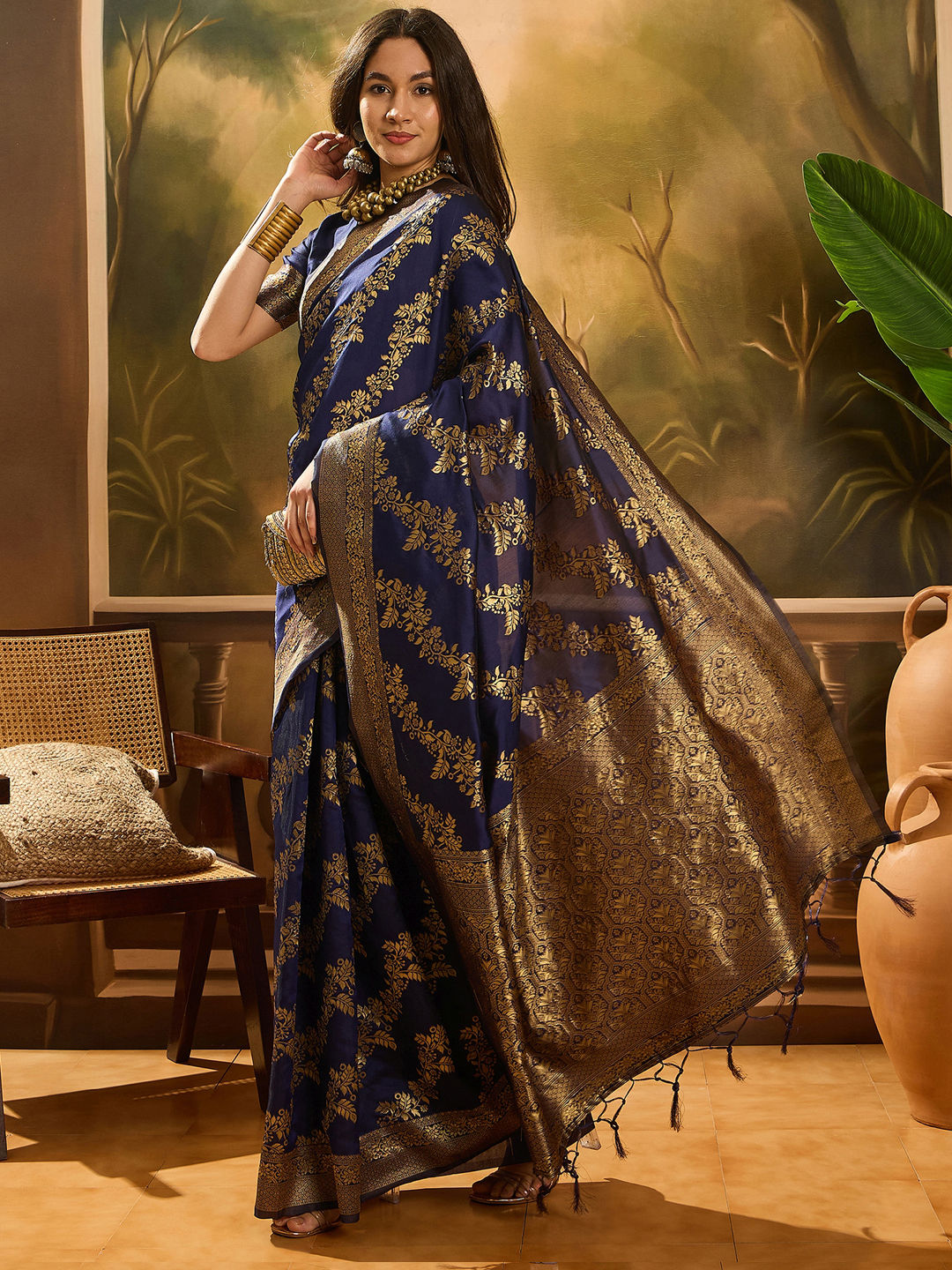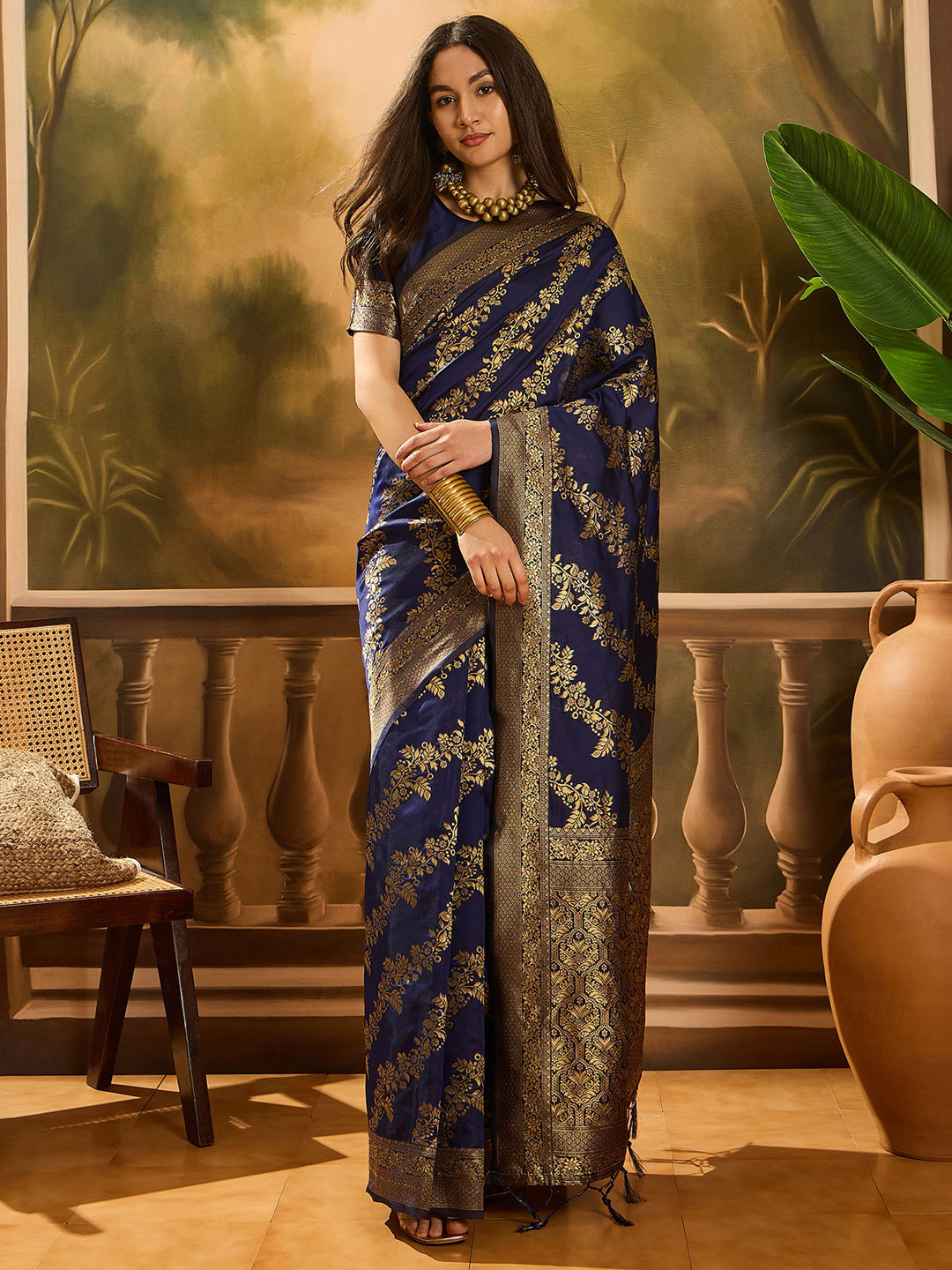 Blue color Saree in Banarasi Silk fabric with Weaving work