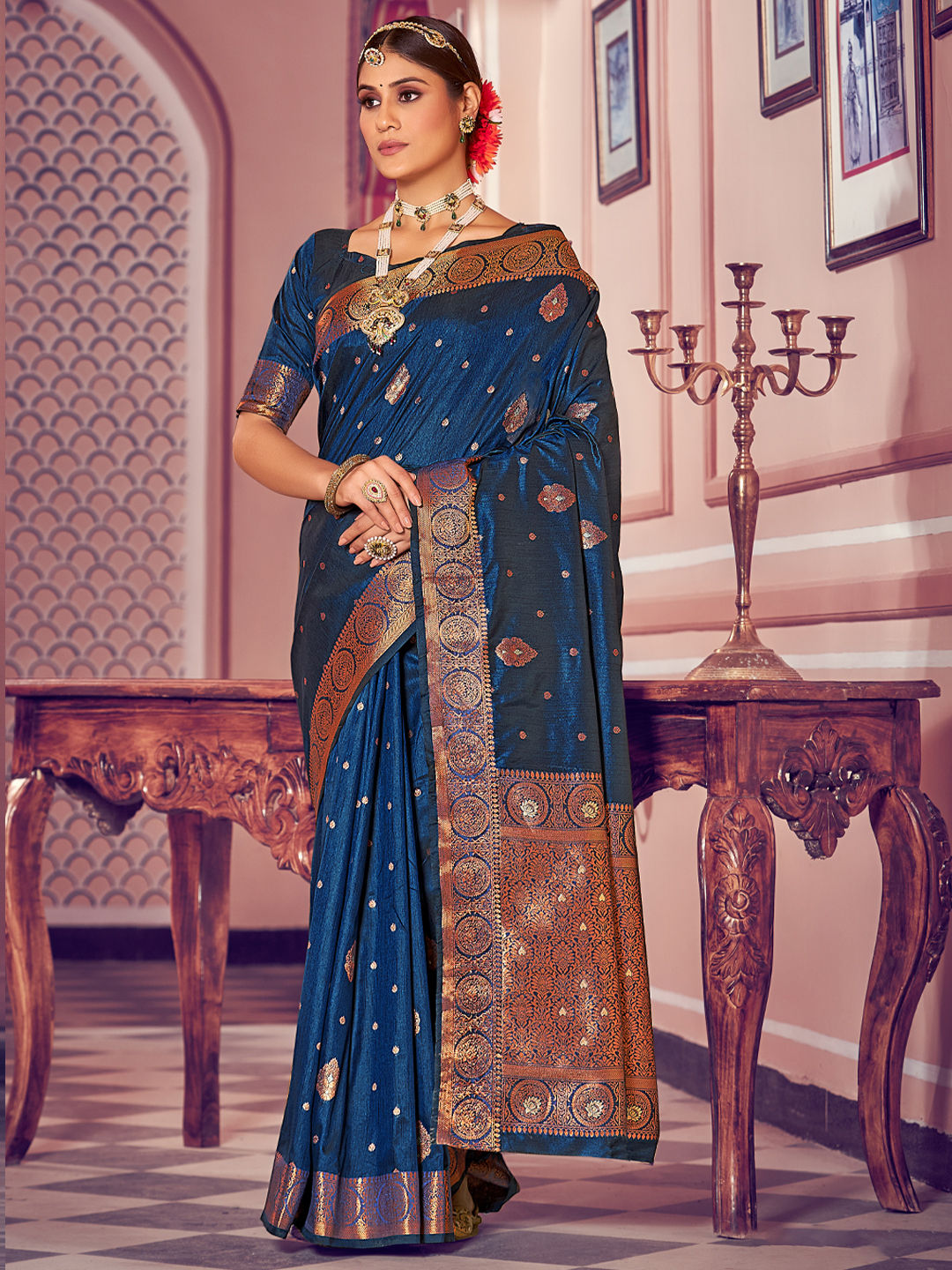 in Blue with Zari work