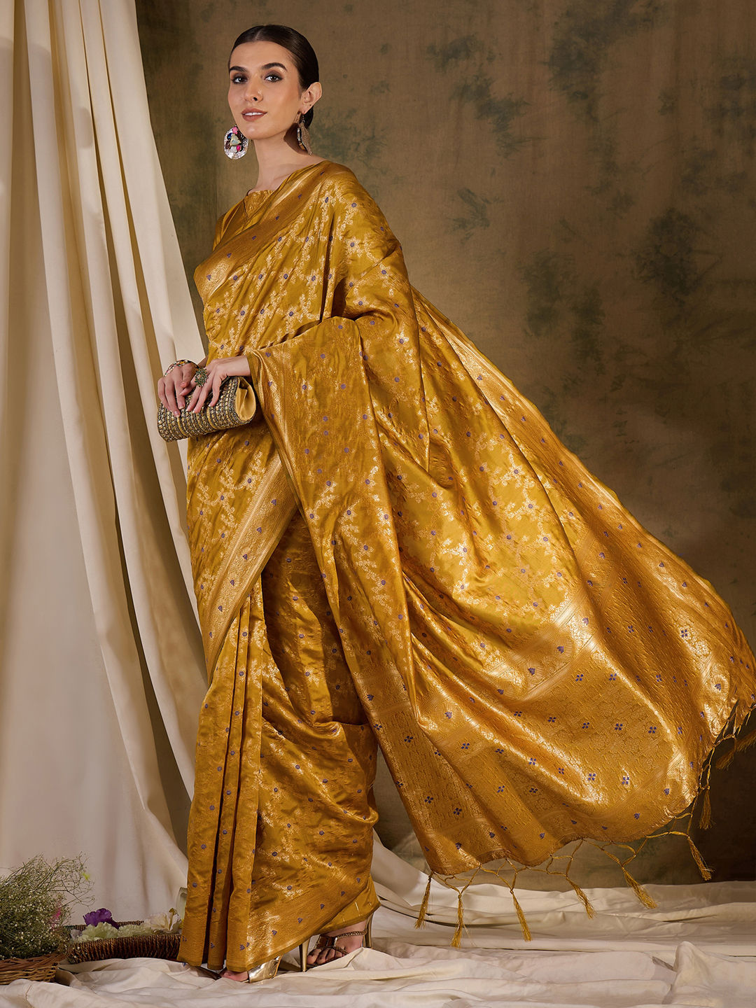 Gold color Saree in Banarasi Silk fabric with Weaving work