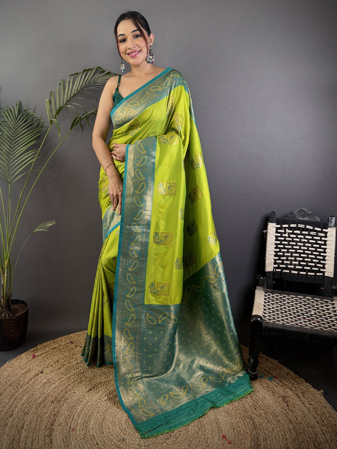 Green color Saree in Banarasi Silk fabric with Weaving work