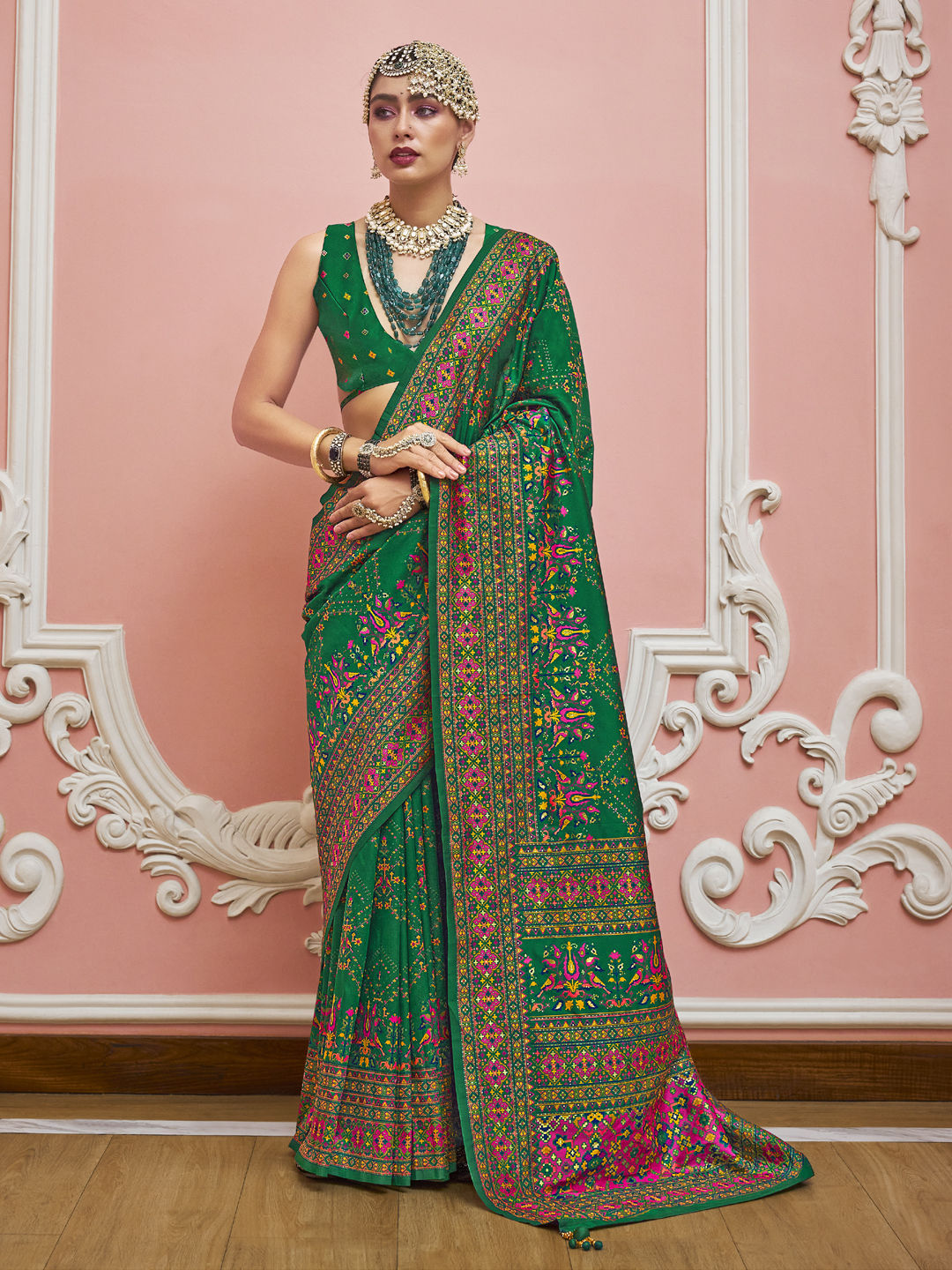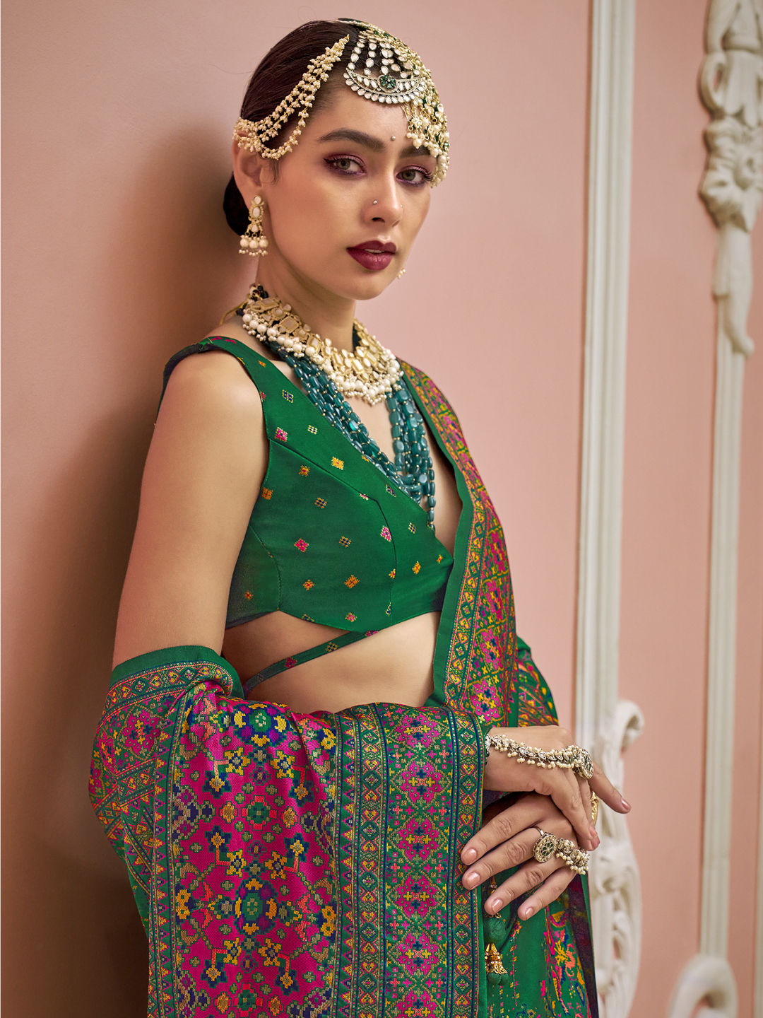 in Green with Weaving work