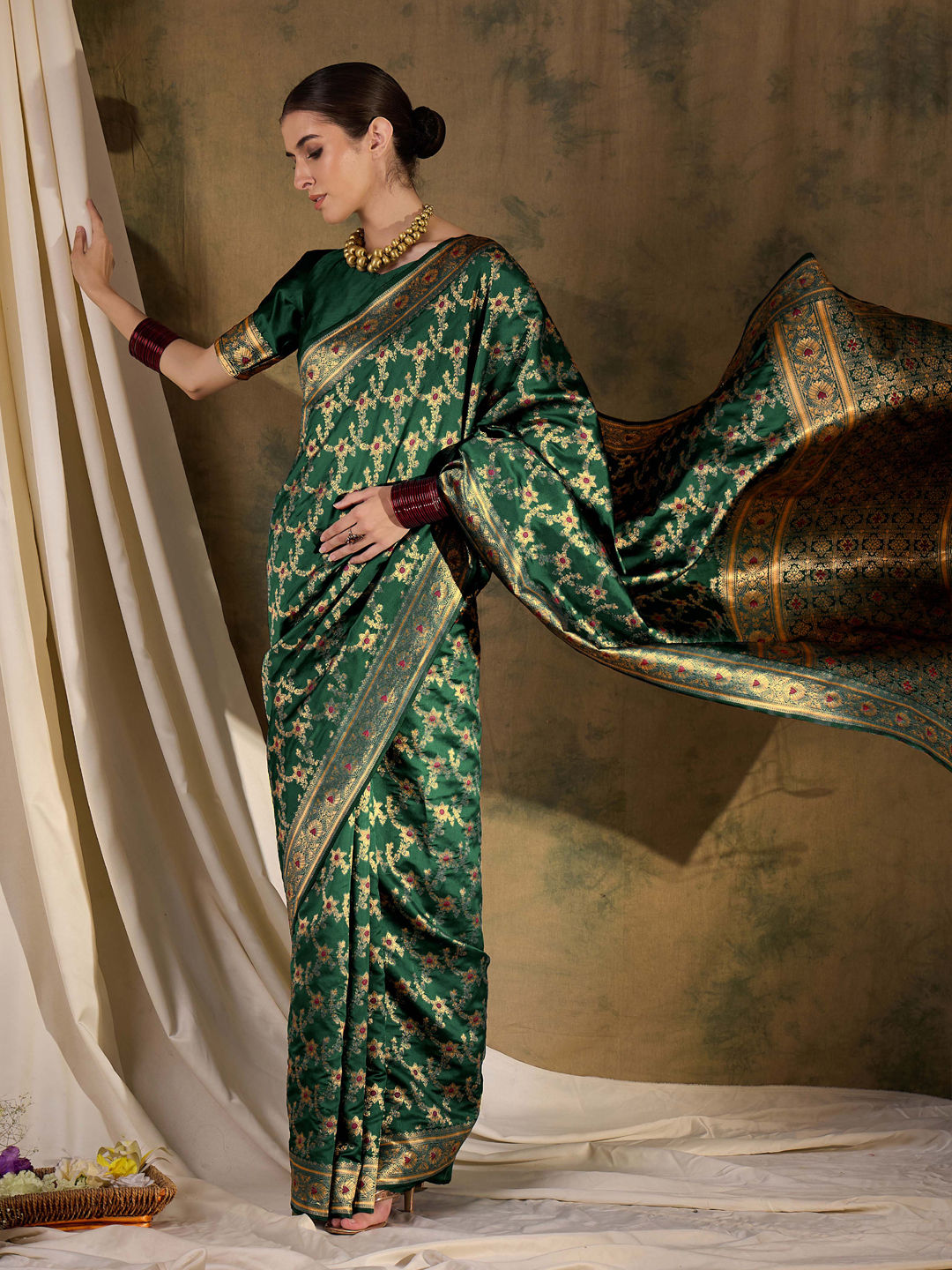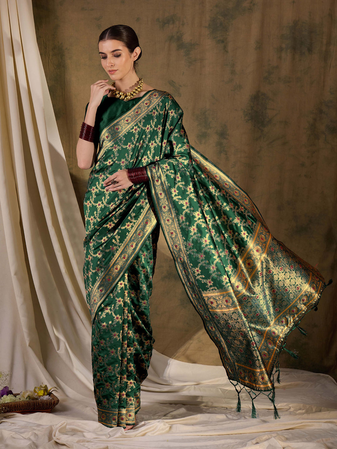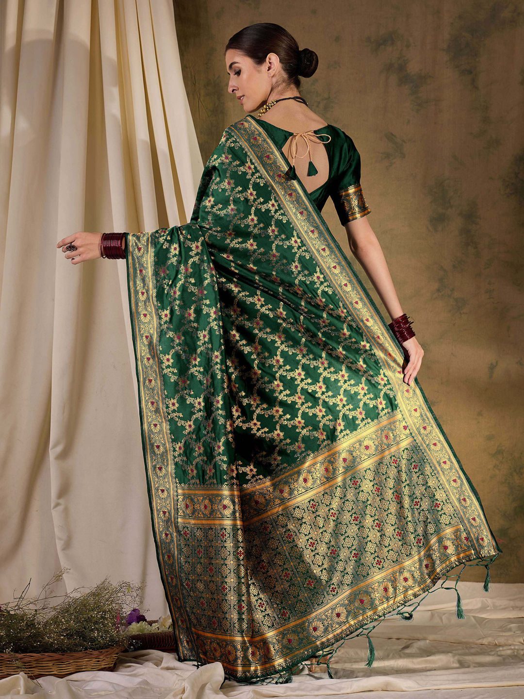 Green color Saree in Banarasi Silk fabric with Weaving work