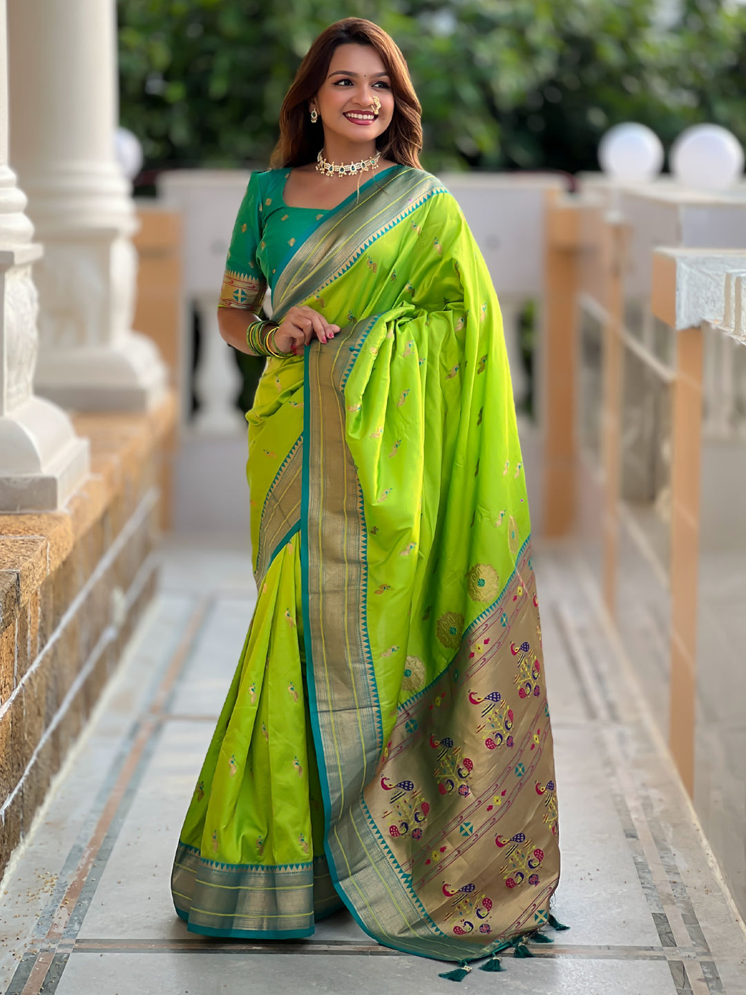in Green with Zari work