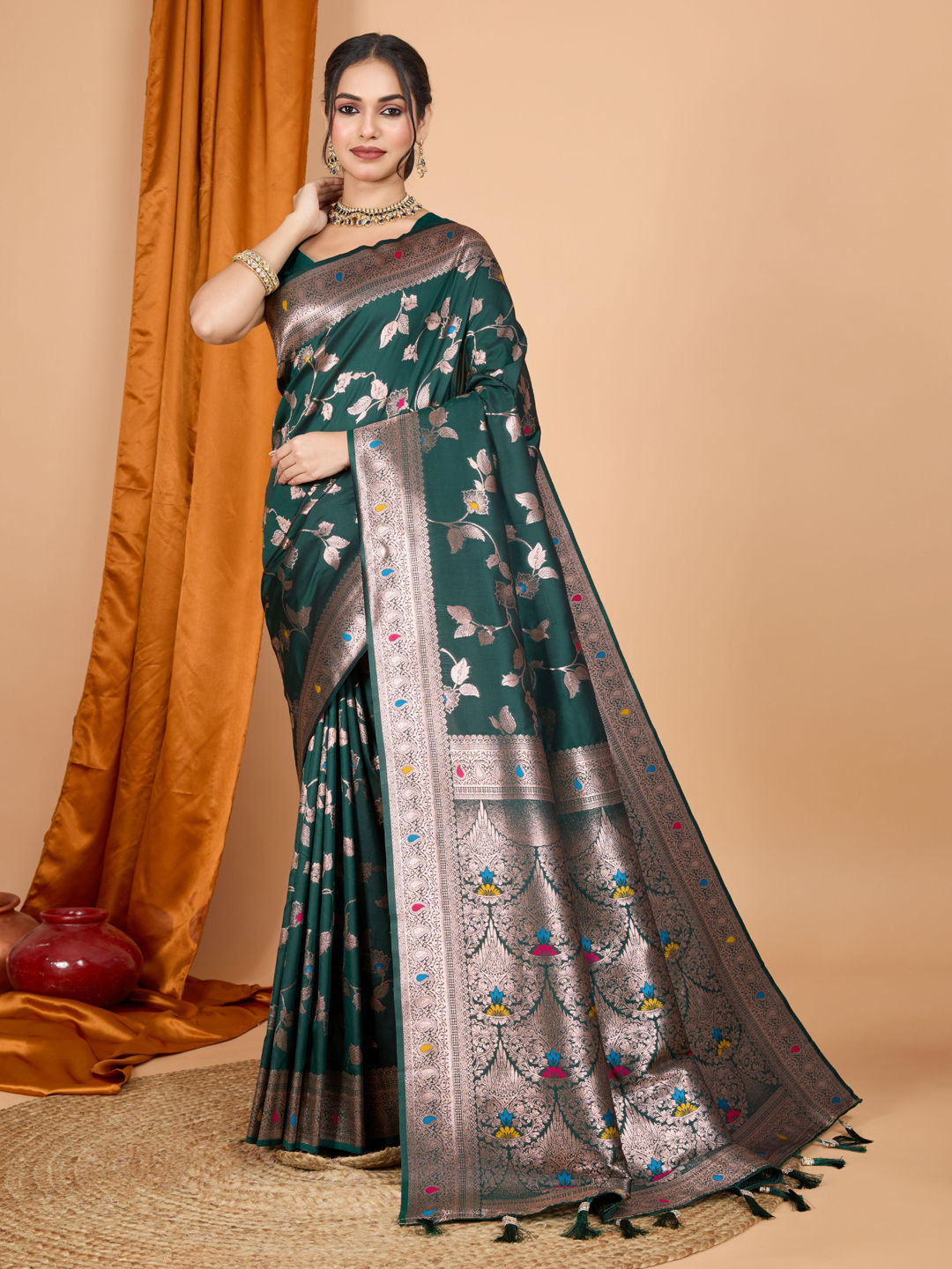 Green color Saree in Banarasi Silk fabric with Weaving, Zari work