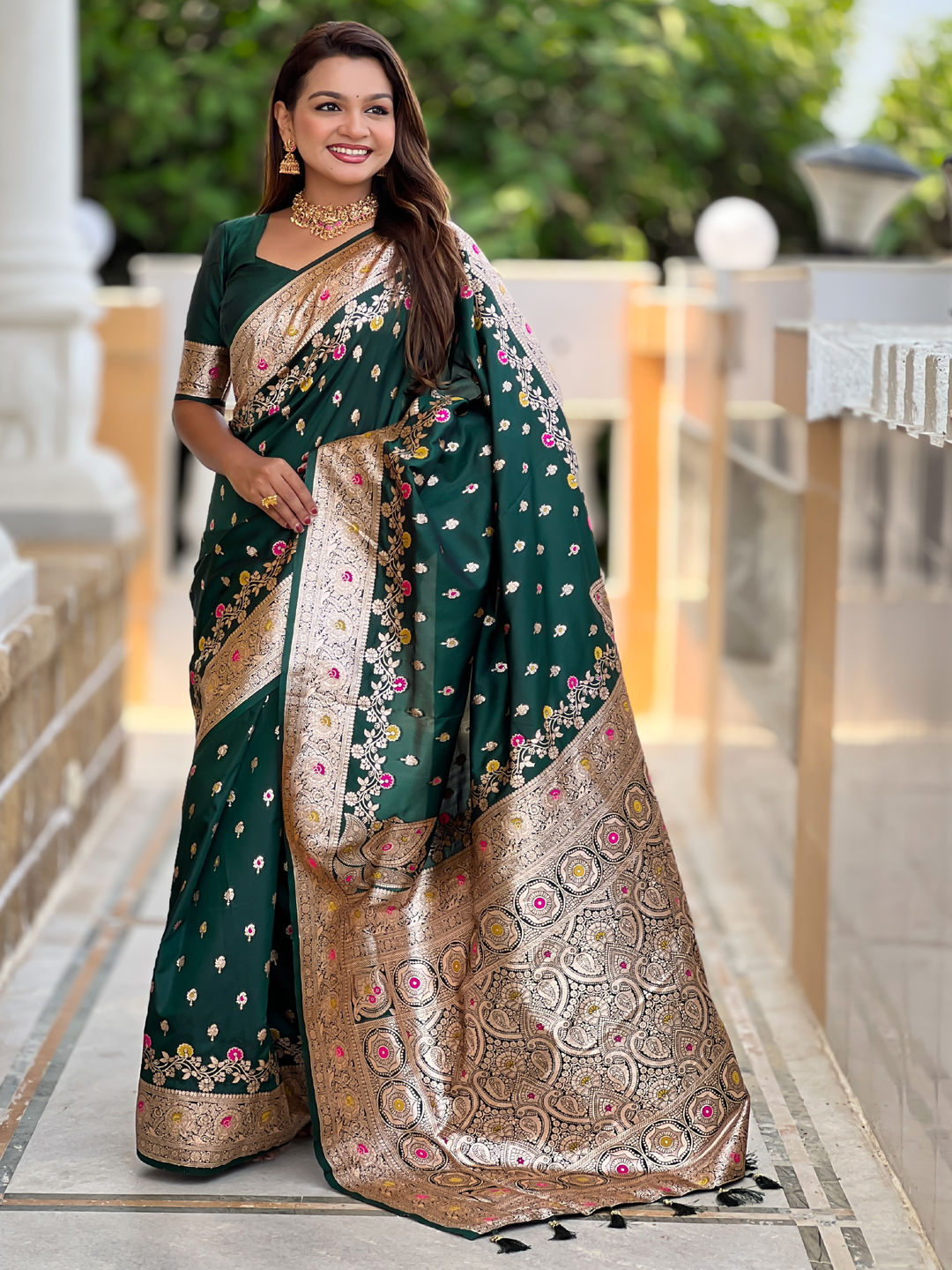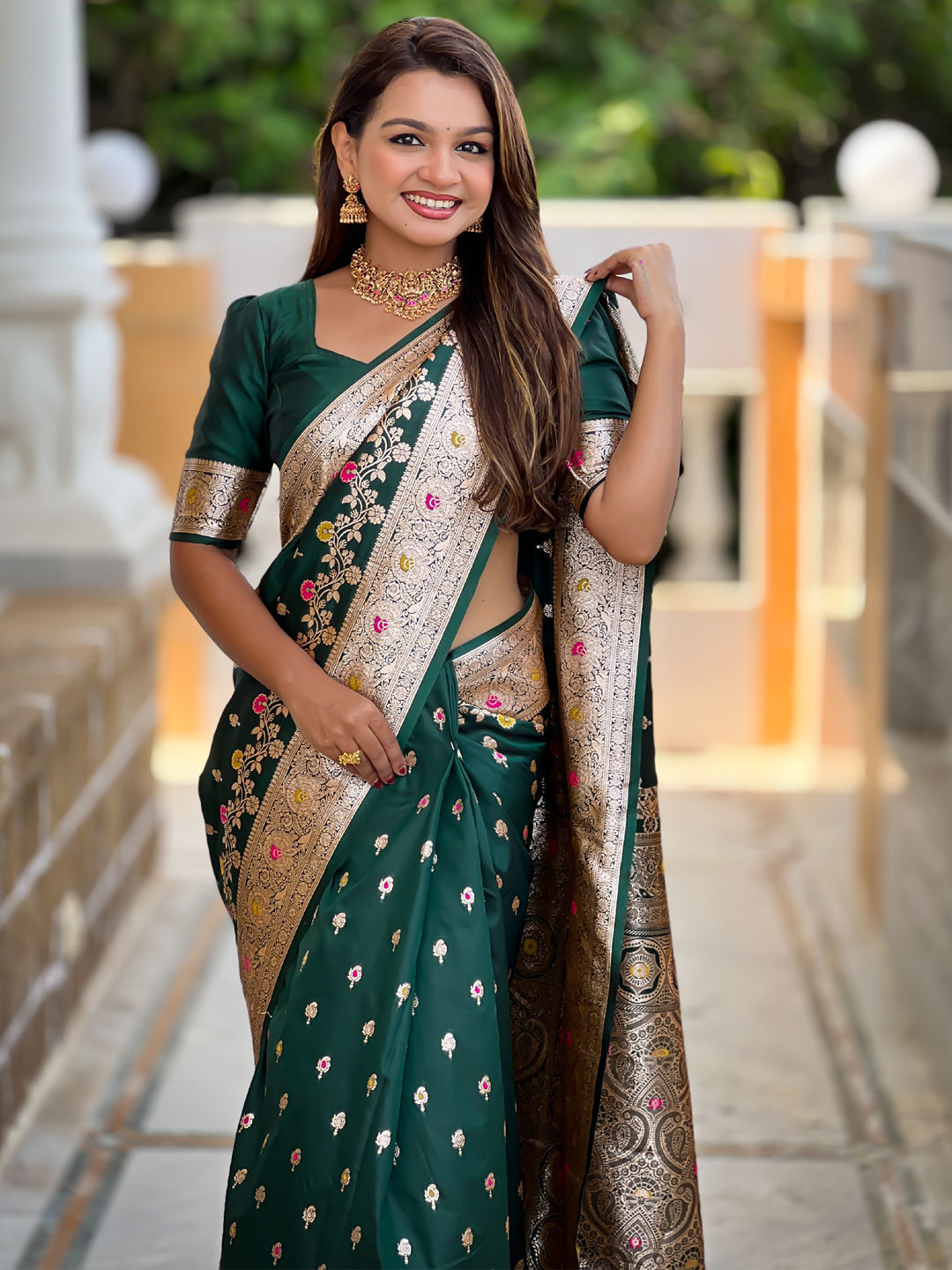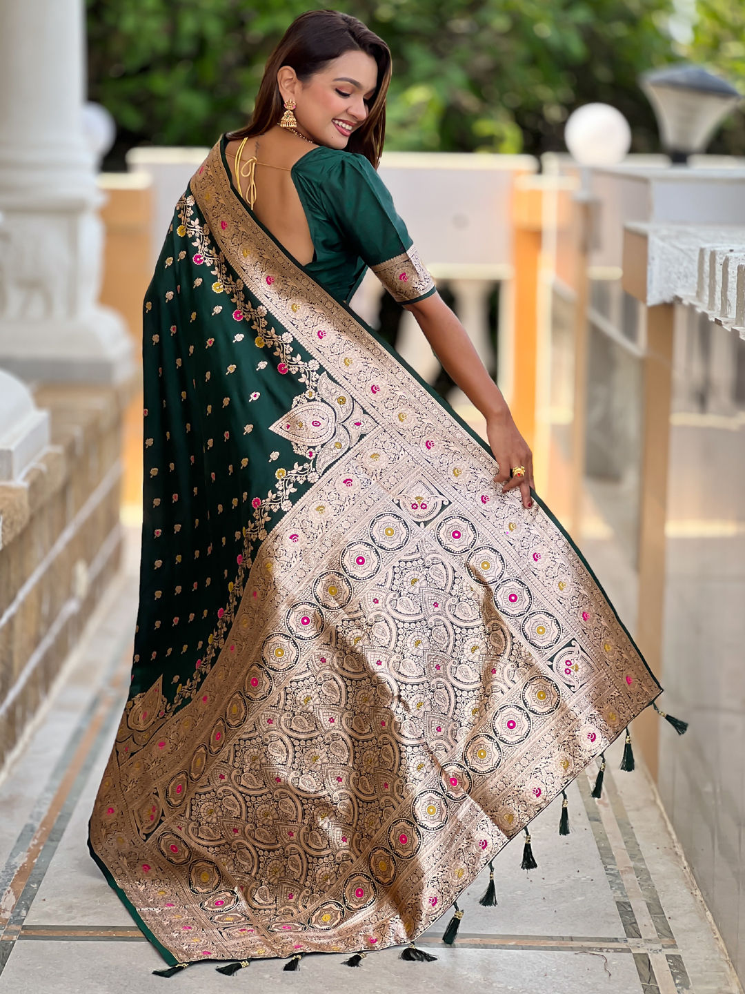Green color Saree in Banarasi Silk fabric with Weaving, Zari work