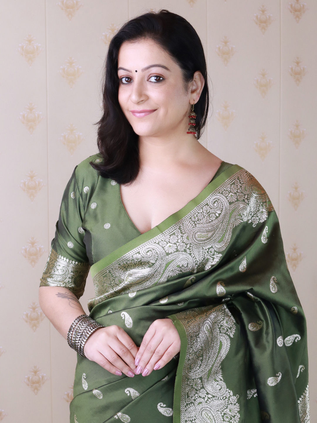 Green color Saree in Banarasi Silk fabric with Weaving, Zari work