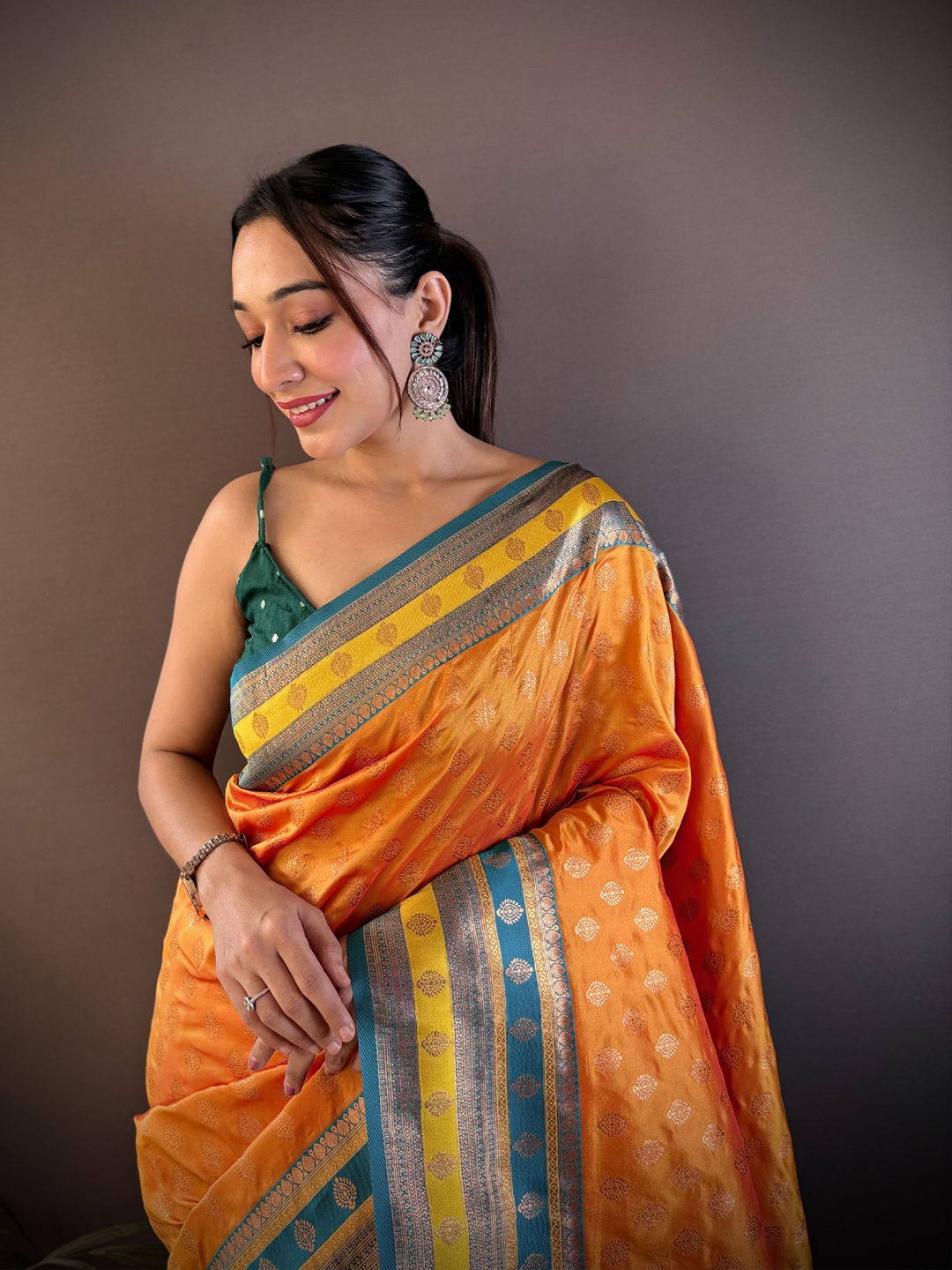 in Orange with Weaving work