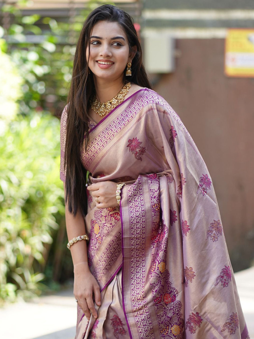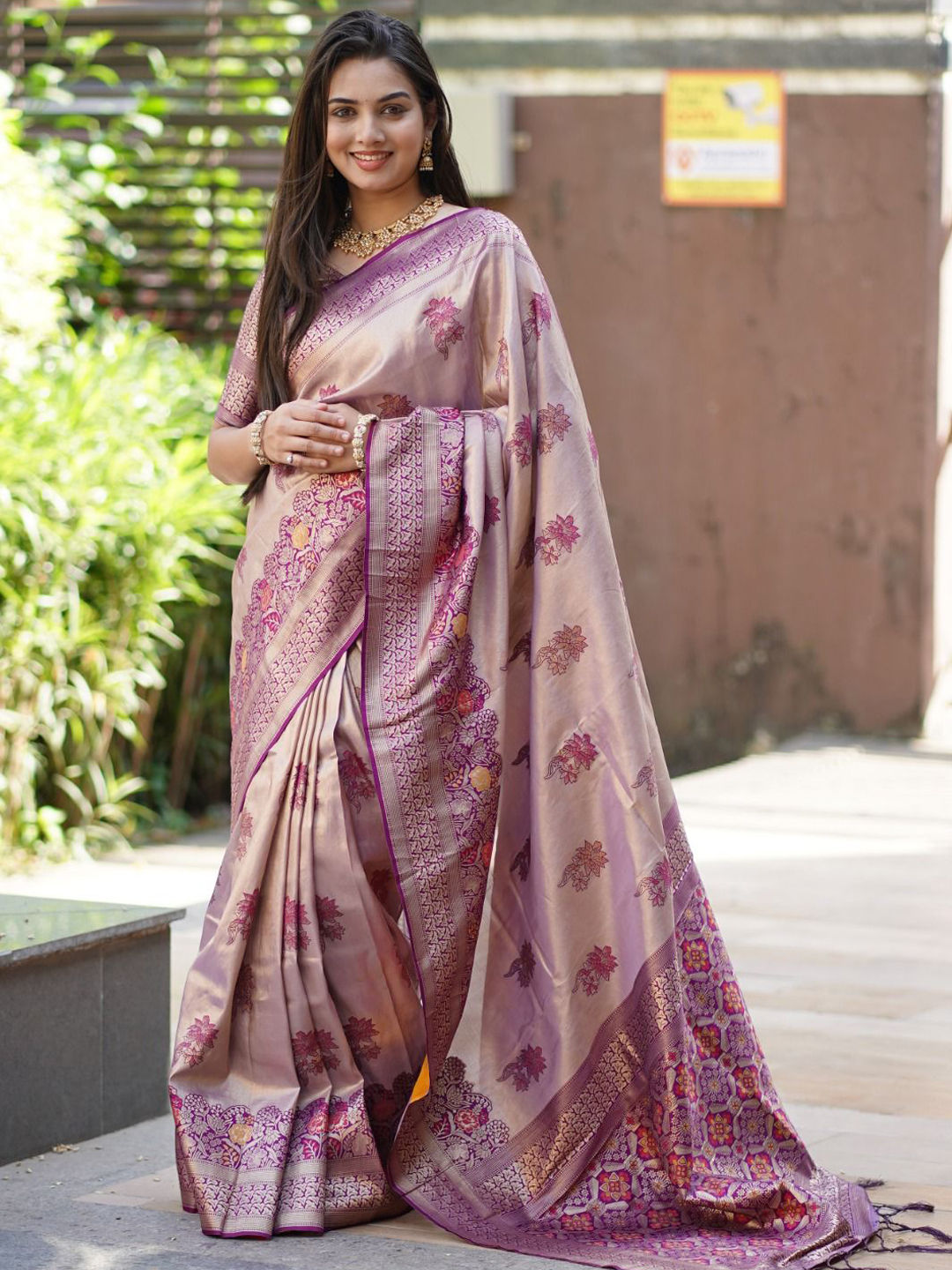 Pink and Majenta color Saree in Banarasi Silk fabric with Thread, Zari work