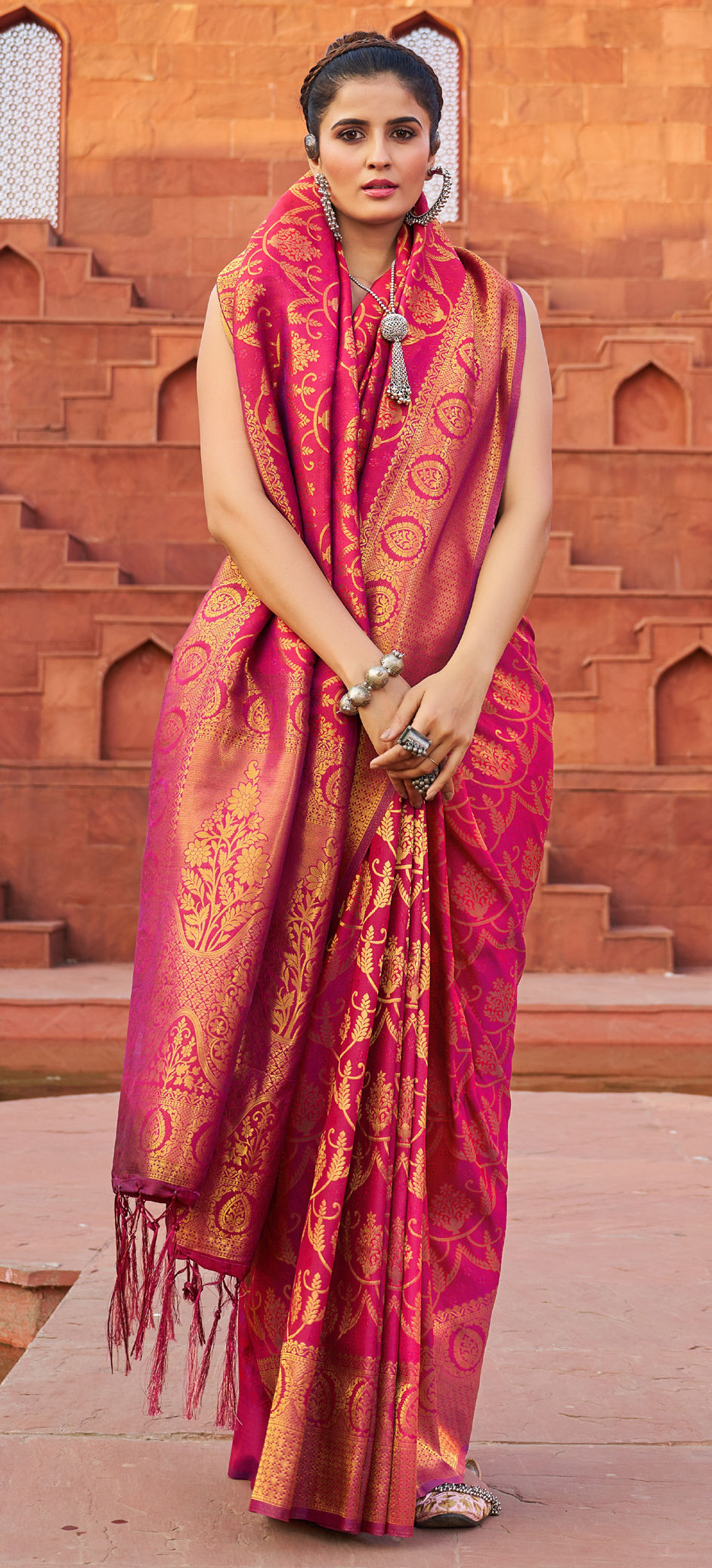 in Pink and Majenta with Weaving work