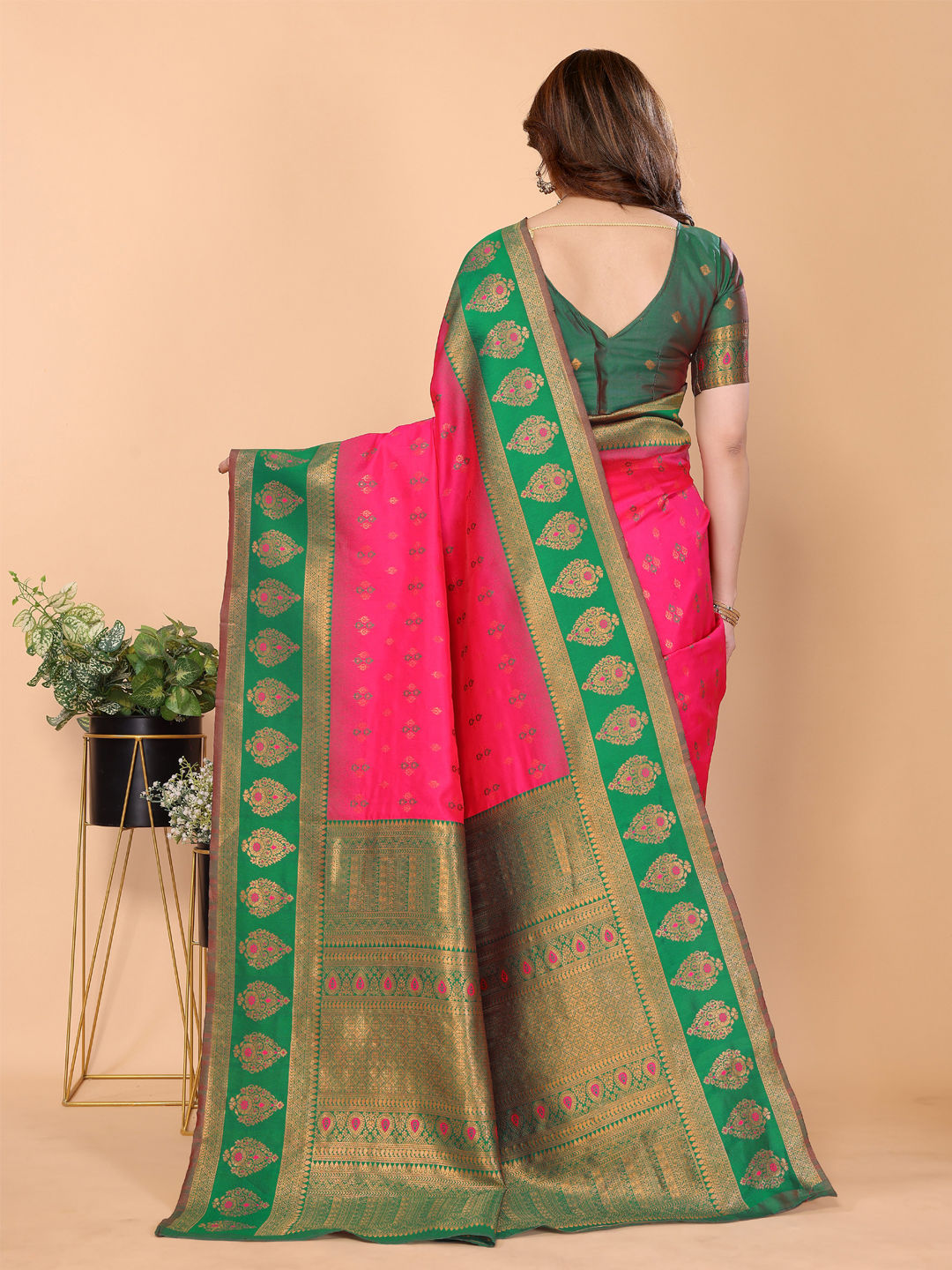 Banarasi Silk Traditional Saree in Pink and Majenta with Weaving work