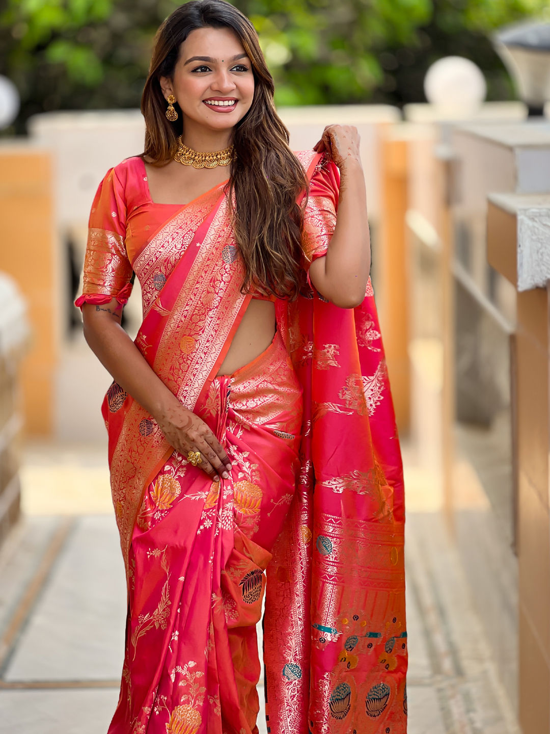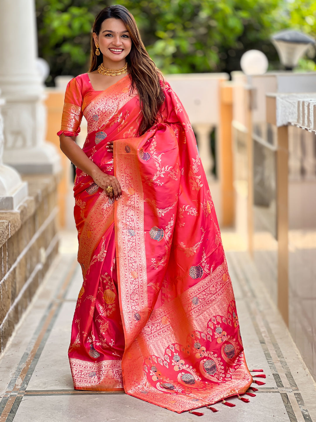 Pink and Majenta color Saree in Banarasi Silk fabric with Weaving, Zari work