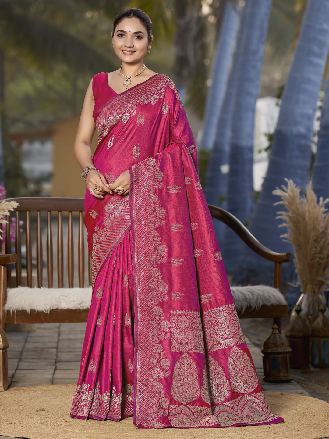Pink and Majenta color Saree in Banarasi Silk fabric with Weaving, Zari work