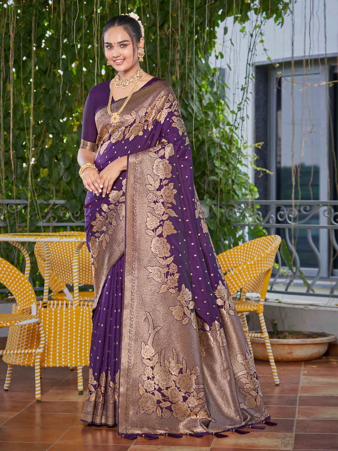 Banarasi Silk Festive Saree in Purple and Violet with Weaving work