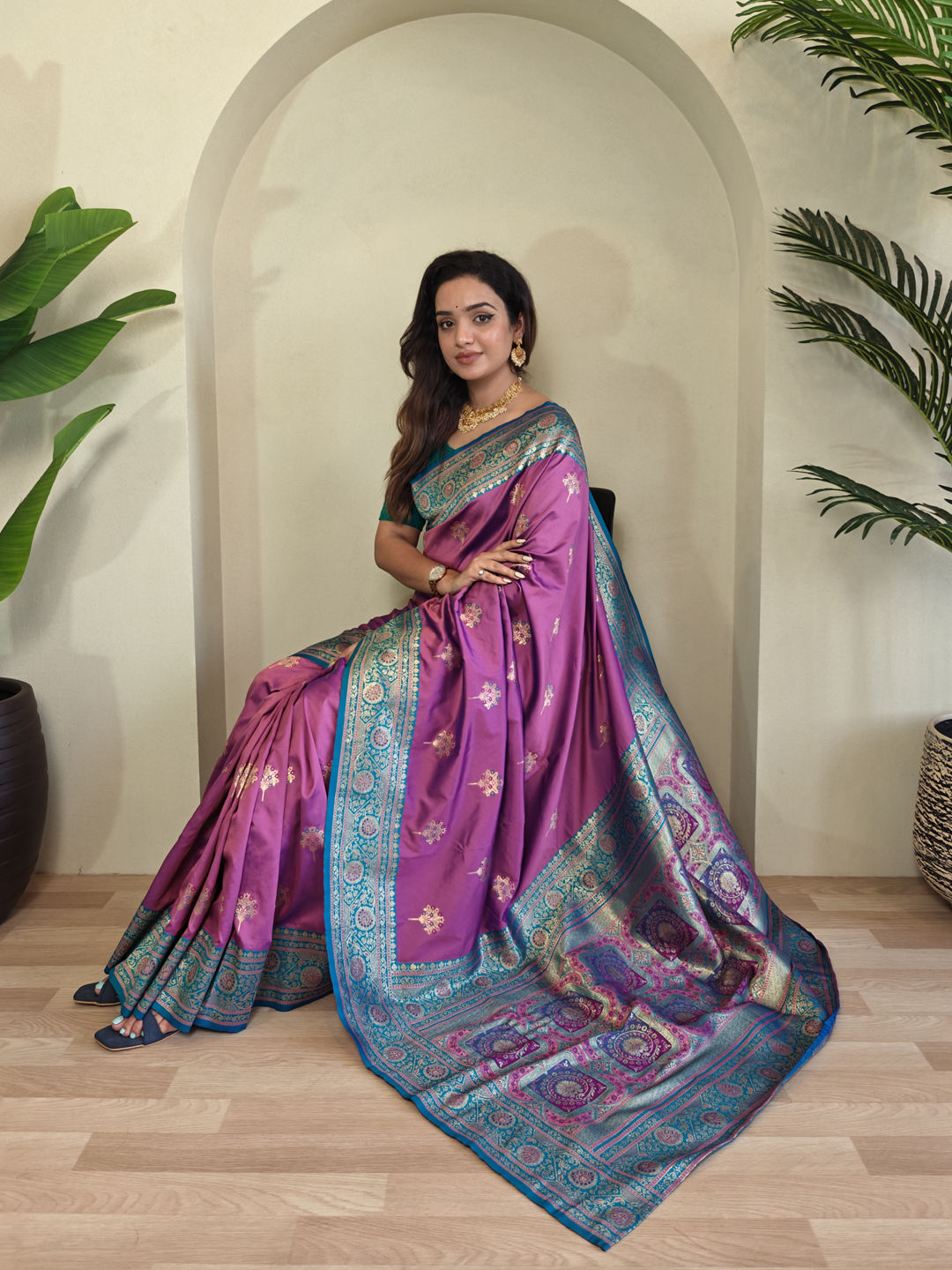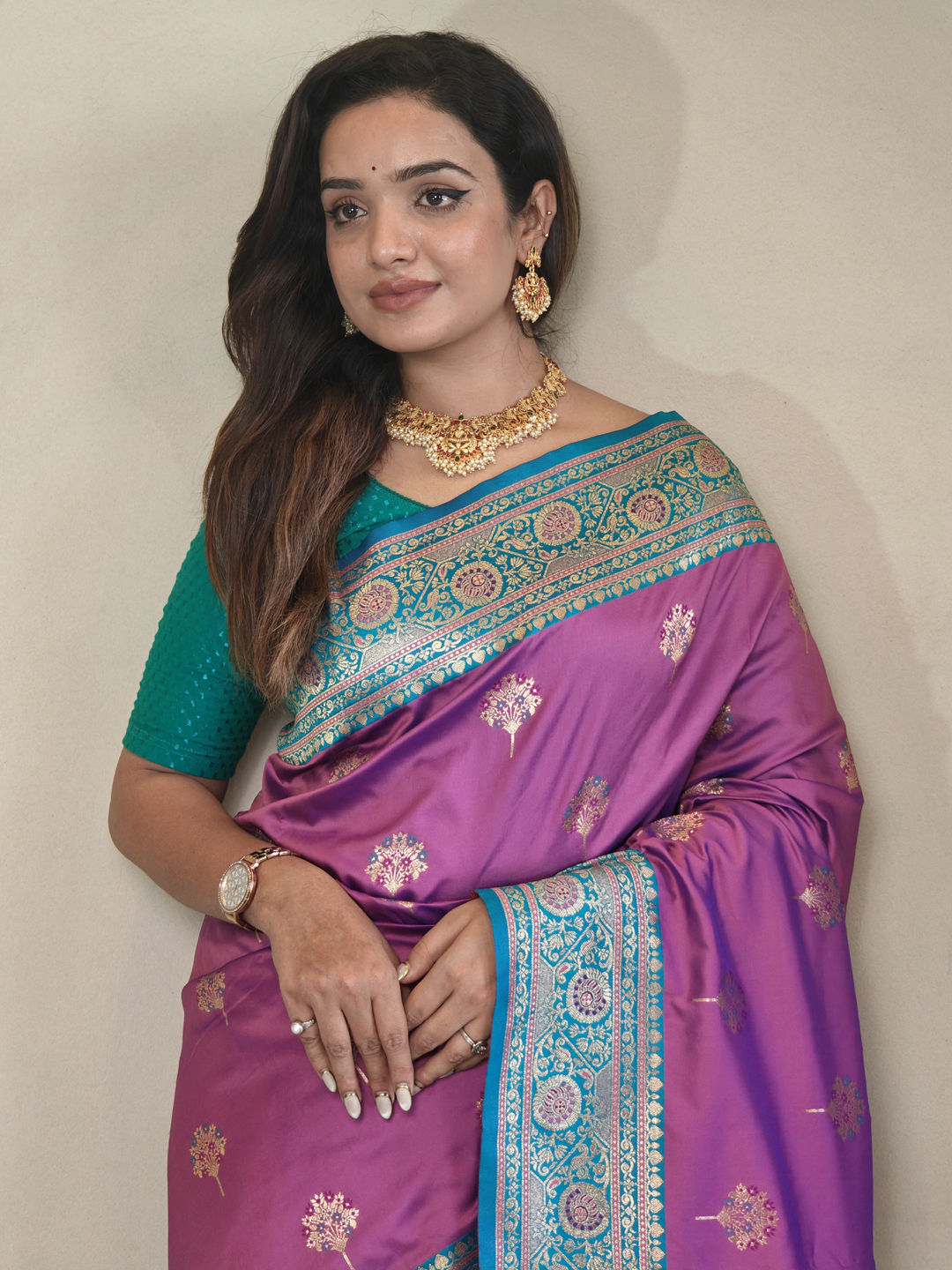 Banarasi Silk Reception Saree in Purple and Violet with Weaving work