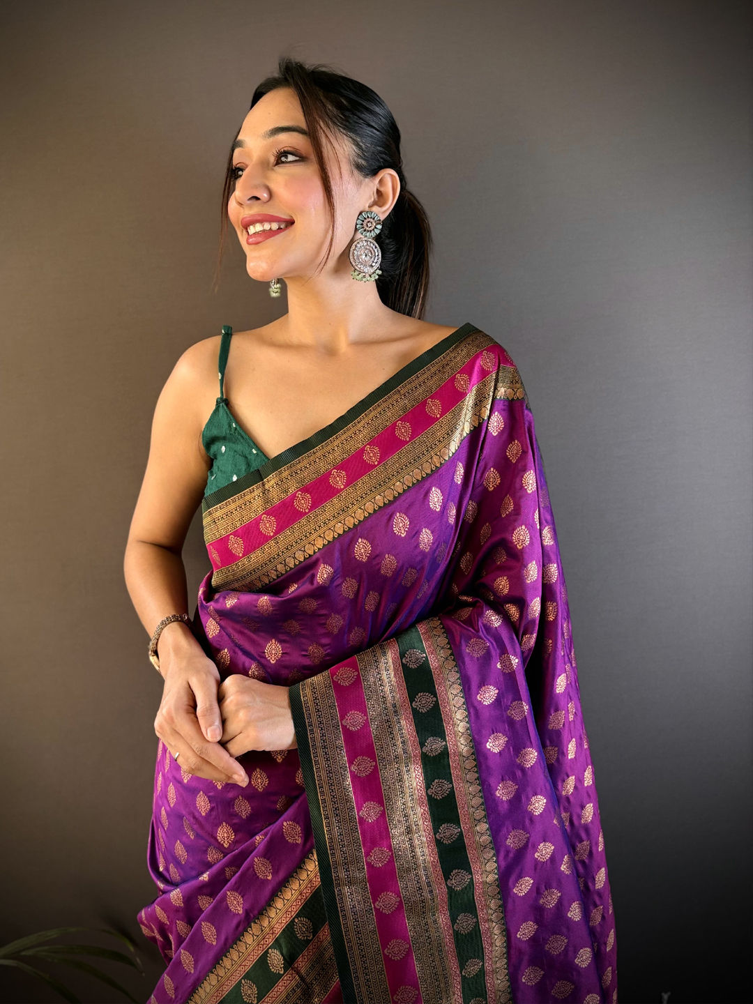 Purple and Violet color Saree in Banarasi Silk fabric with Weaving work