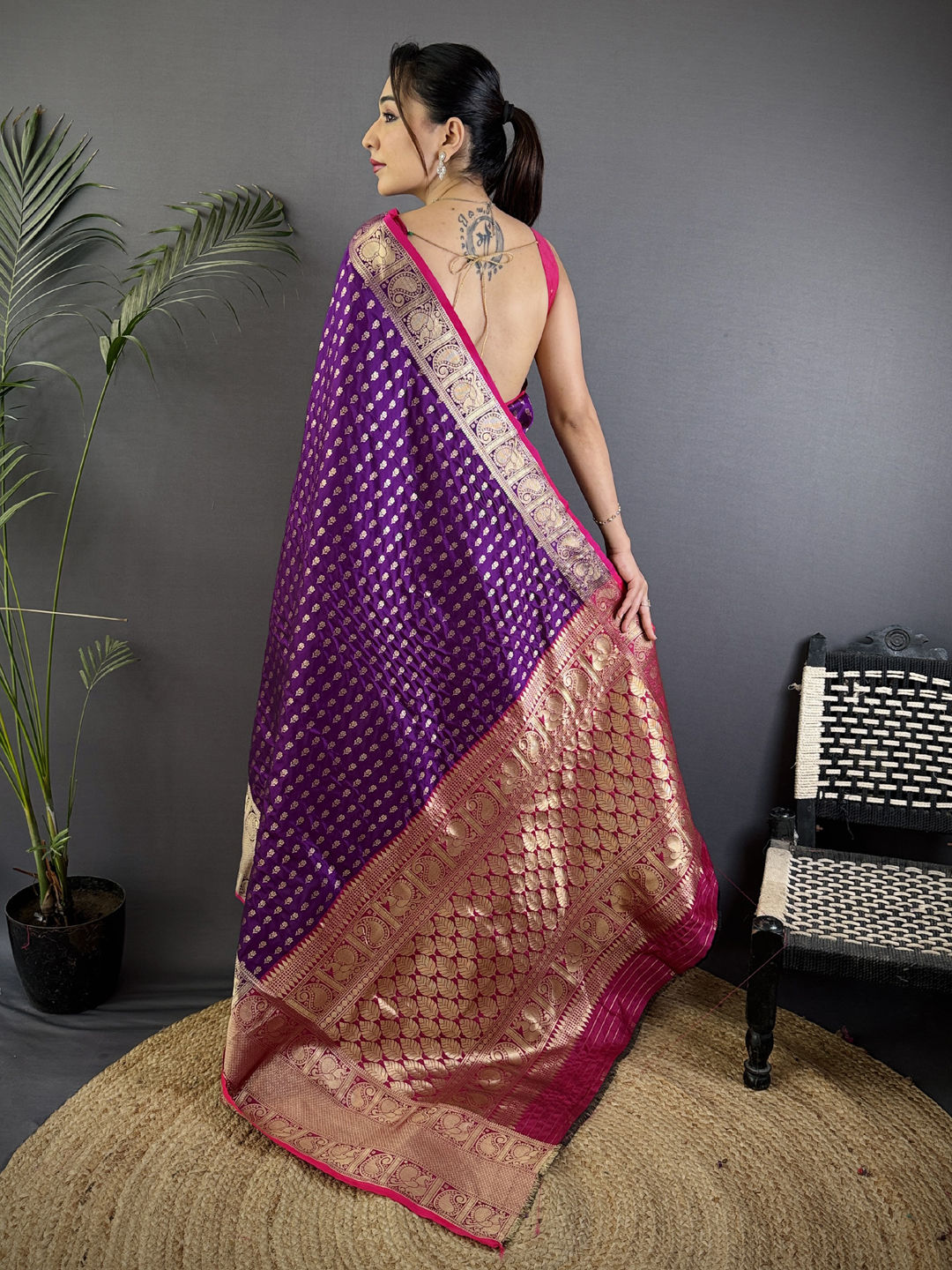 in Purple and Violet with Weaving work