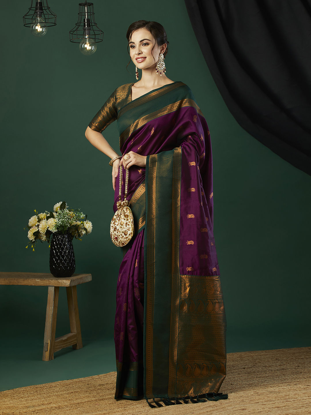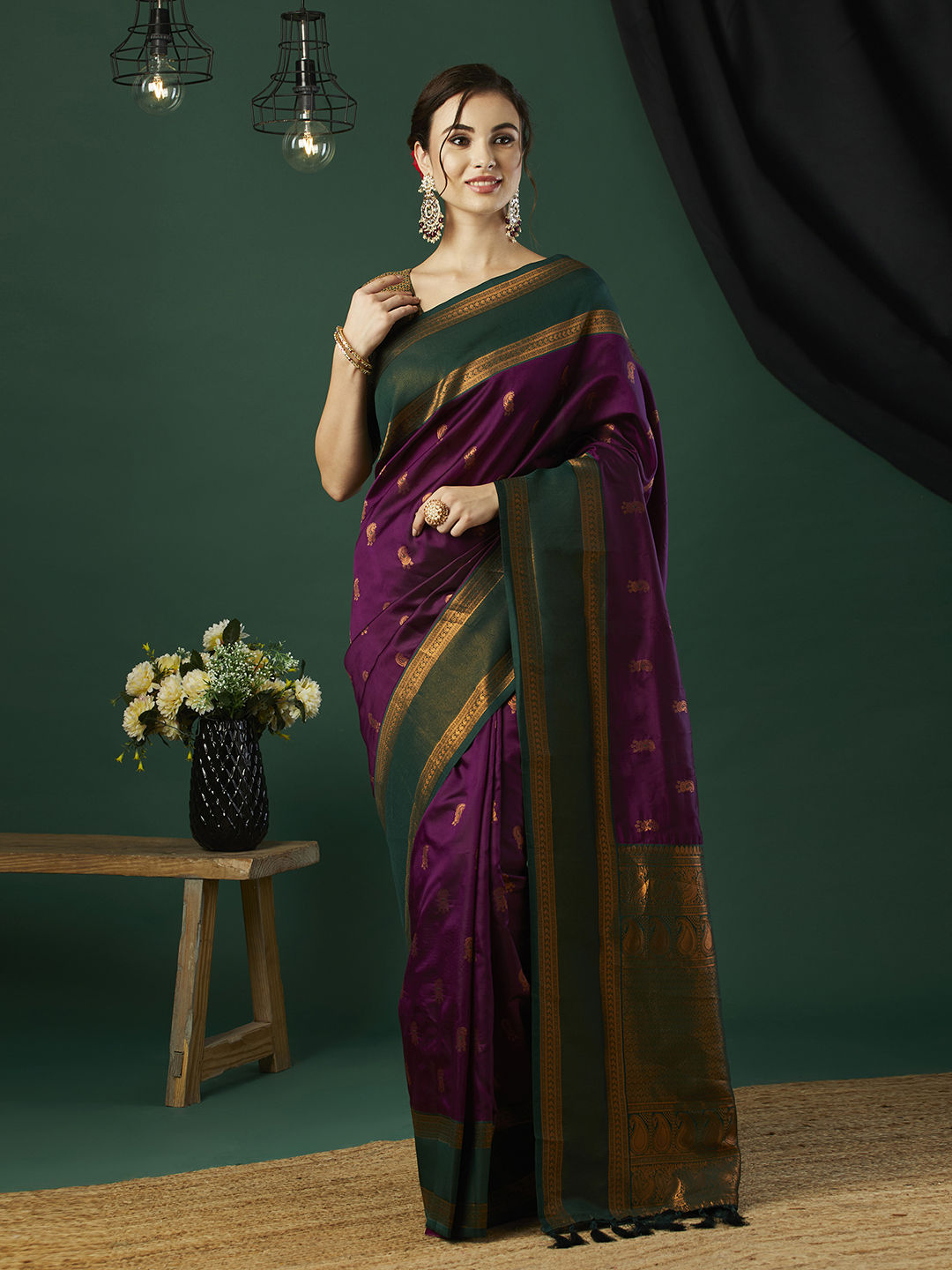 Purple and Violet color Saree in Banarasi Silk fabric with Weaving, Zari work