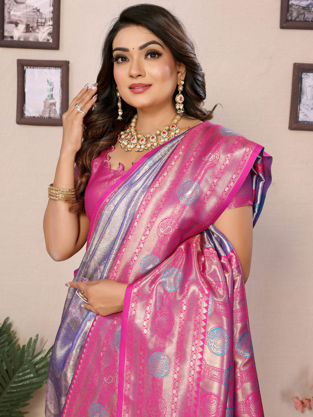 Purple and Violet color Saree in Banarasi Silk fabric with Weaving, Zari work