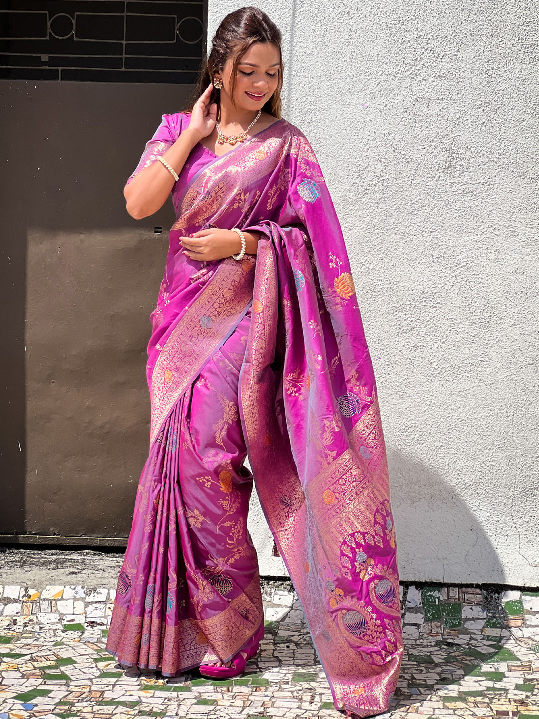 Banarasi Silk Festive Saree in Purple and Violet with Weaving work