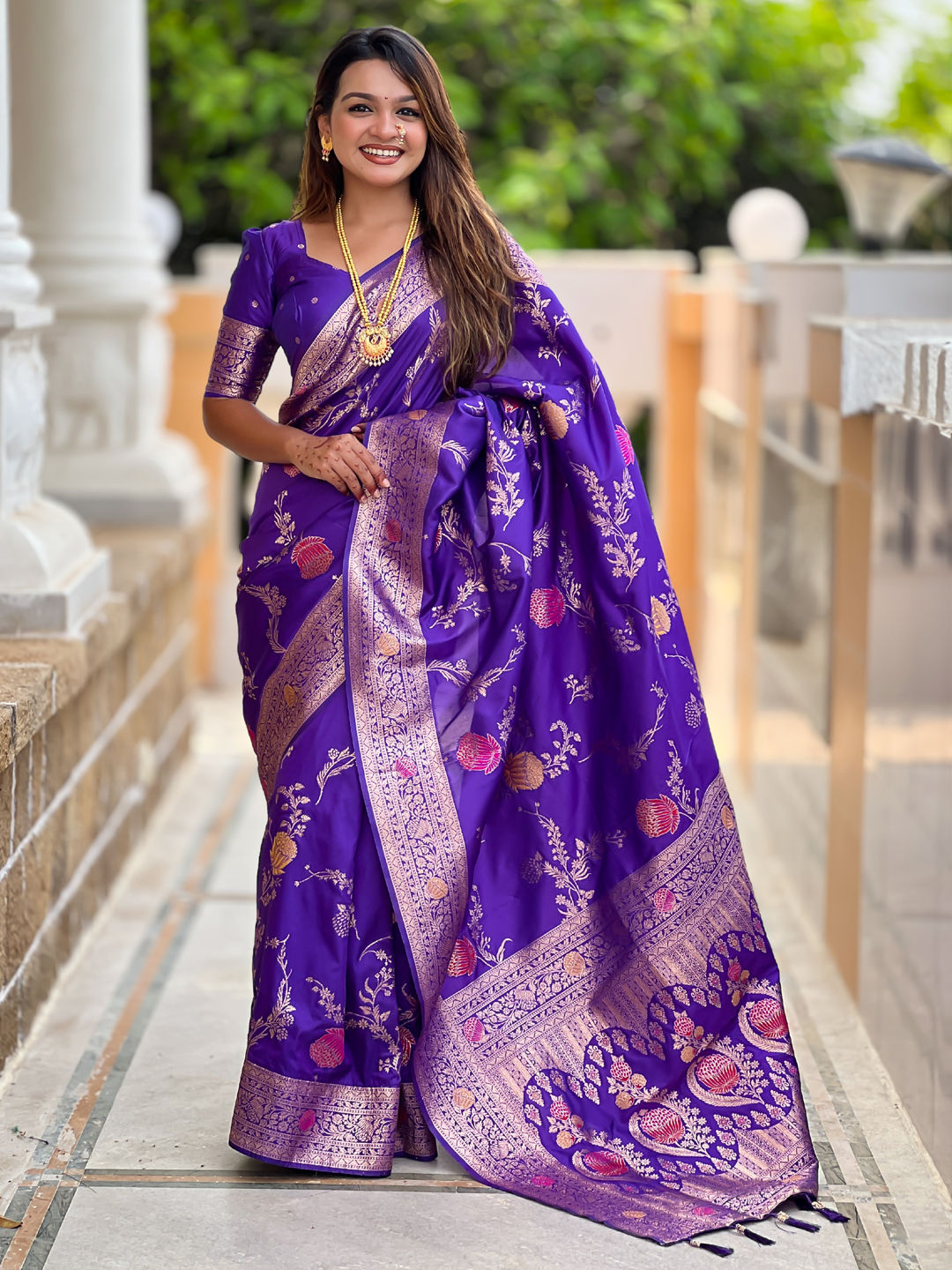 Banarasi Silk Festive Saree in Purple and Violet with Weaving work