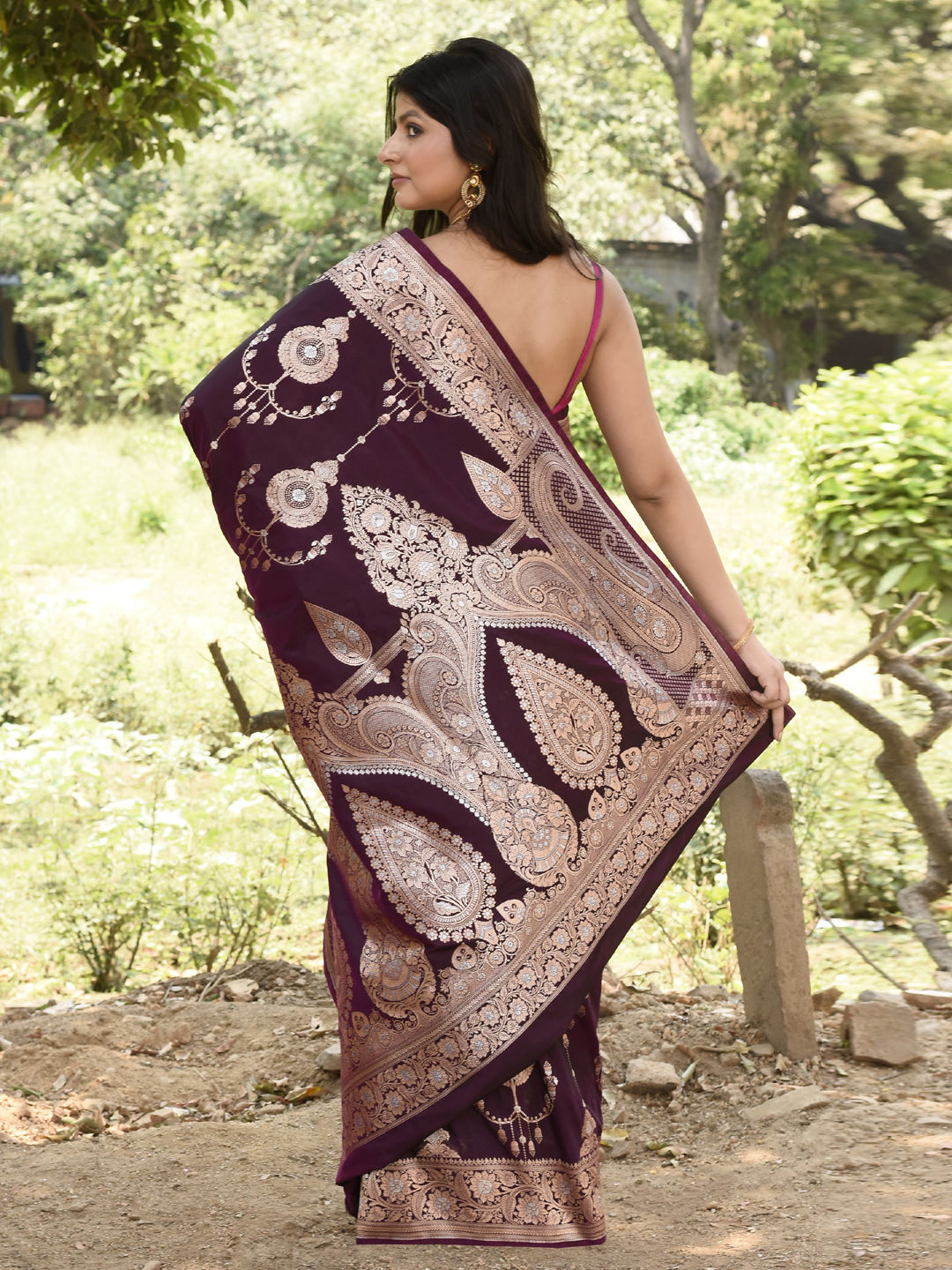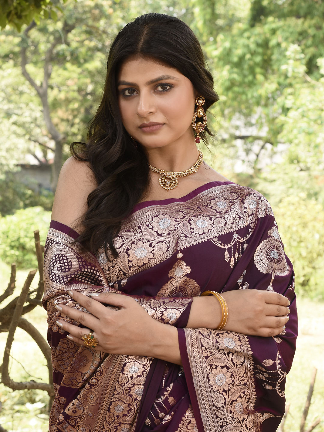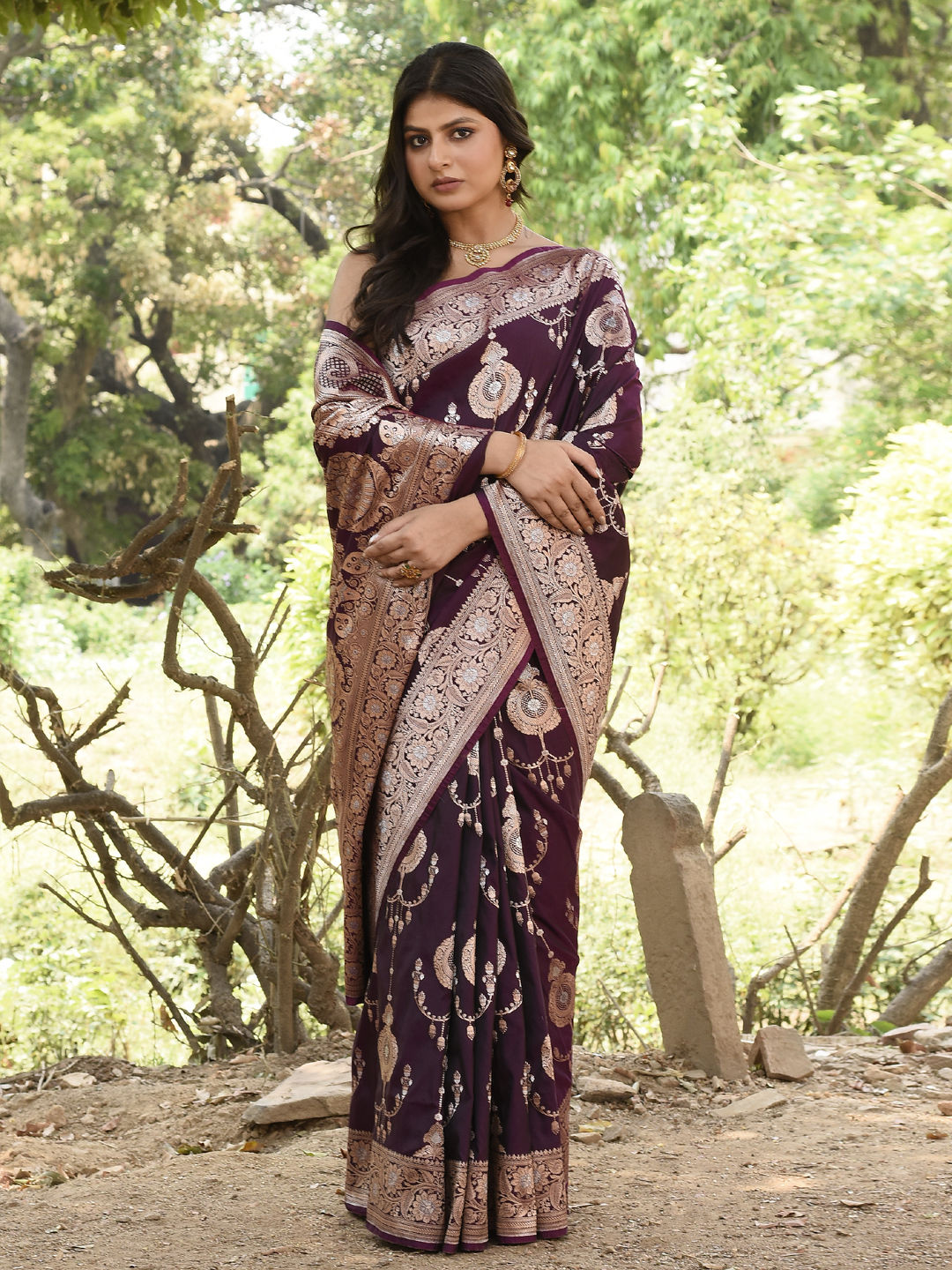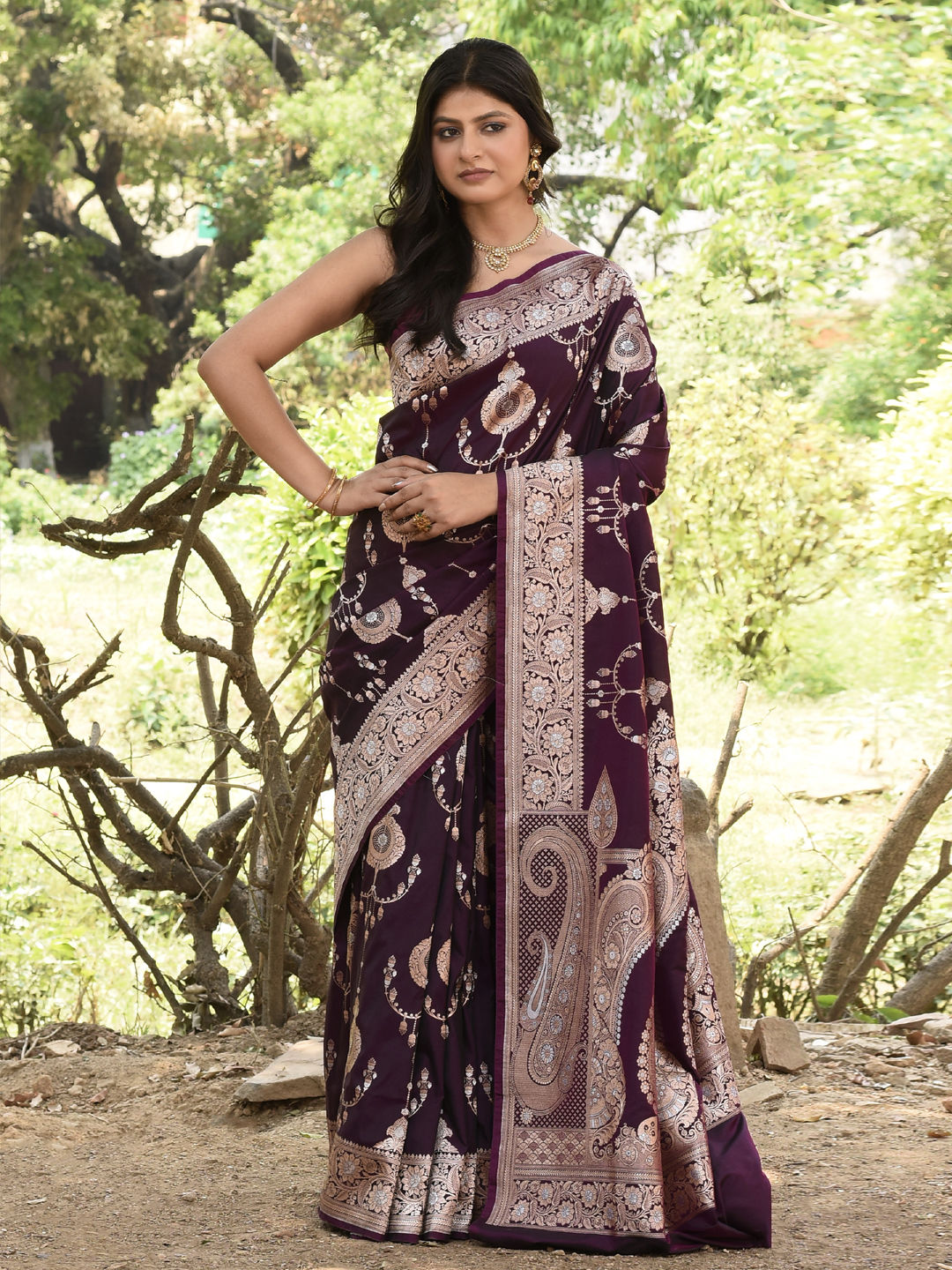 Purple and Violet color Saree in Banarasi Silk fabric with Border, Zari work