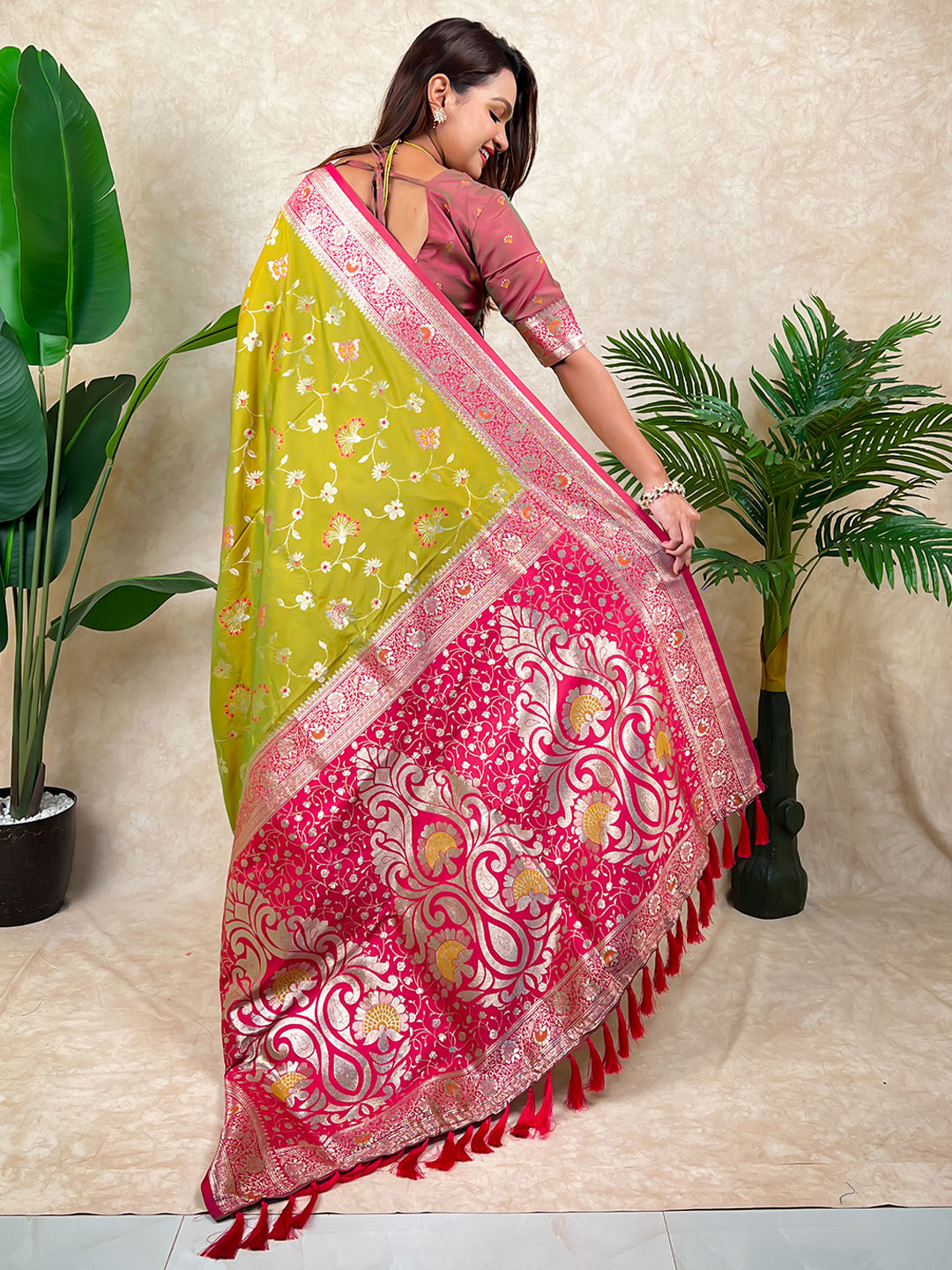 Banarasi Silk Reception Saree in Pink and Majenta with Weaving work