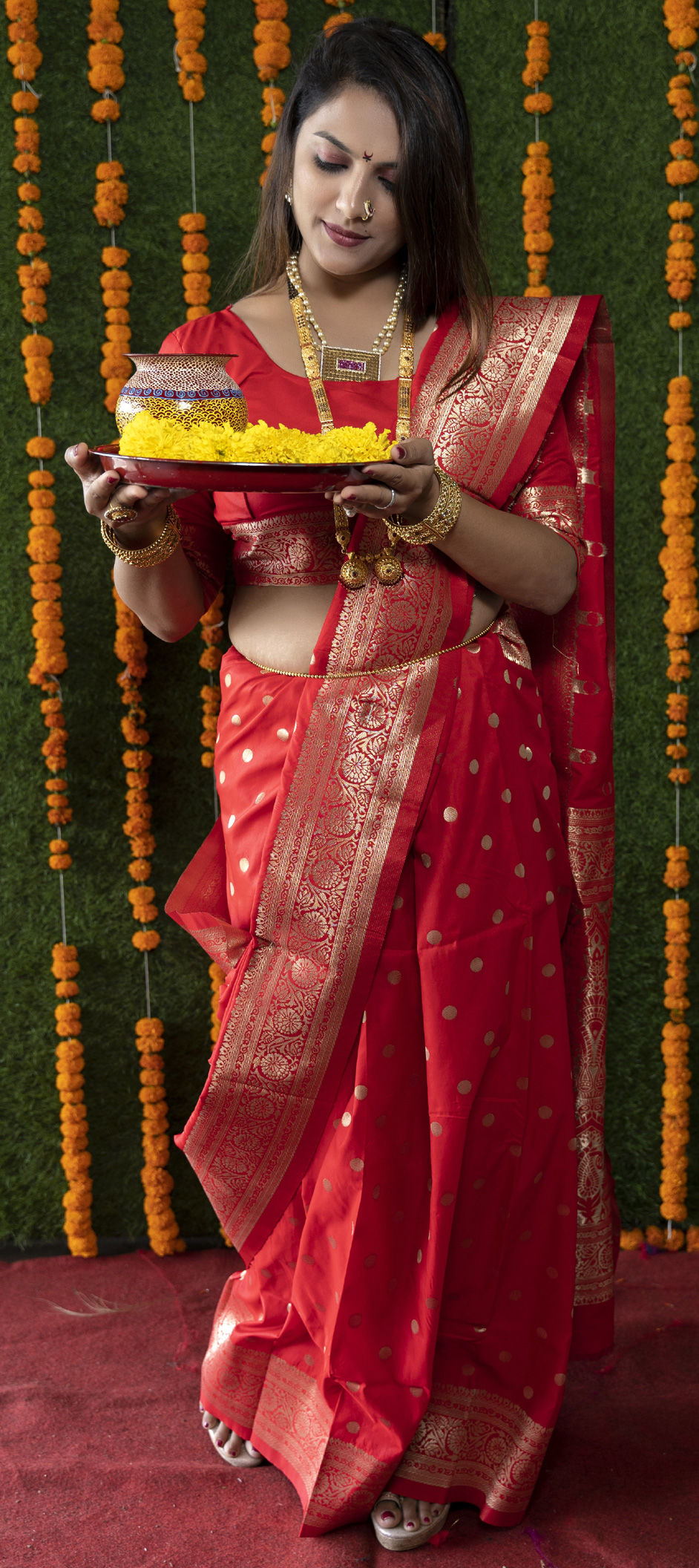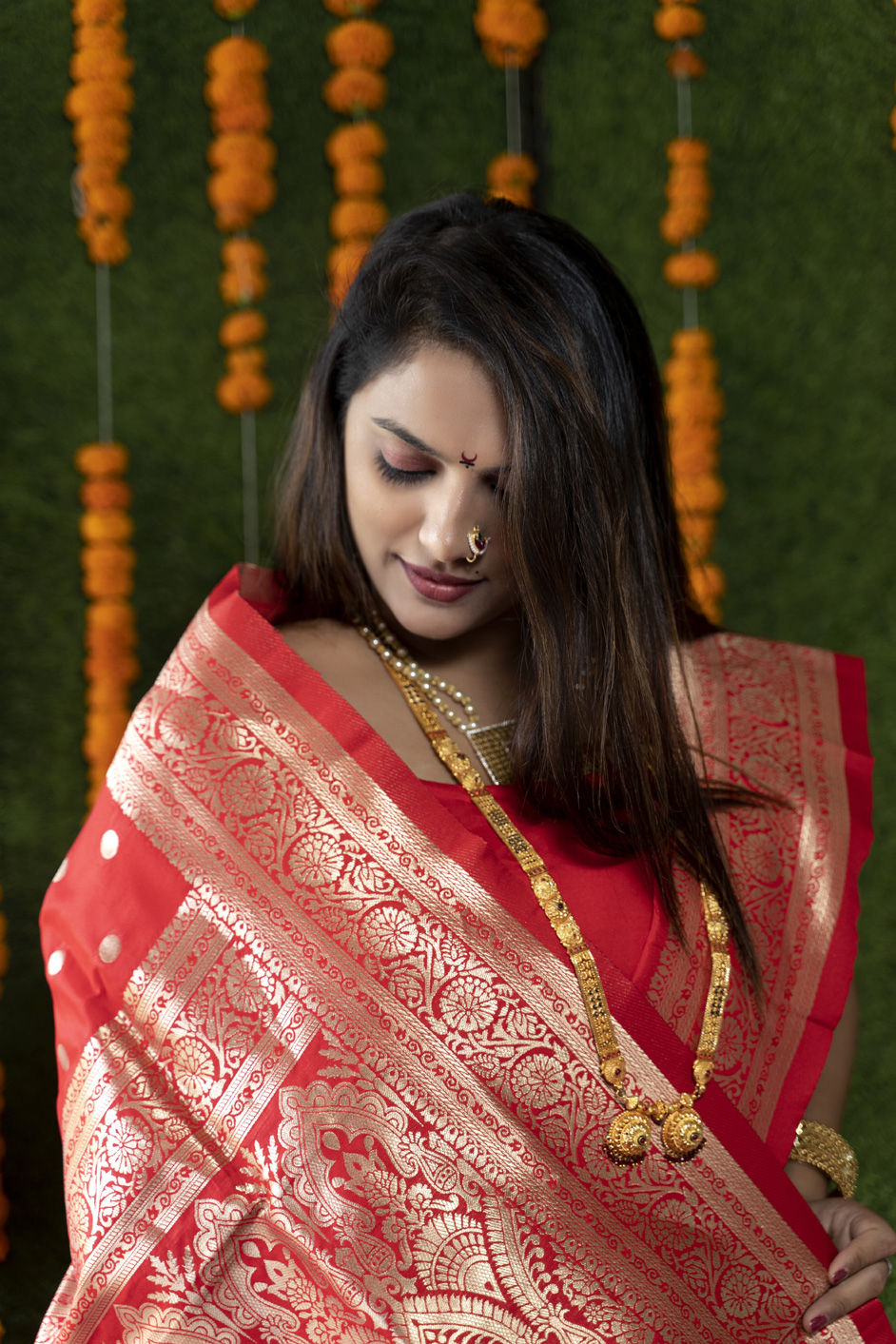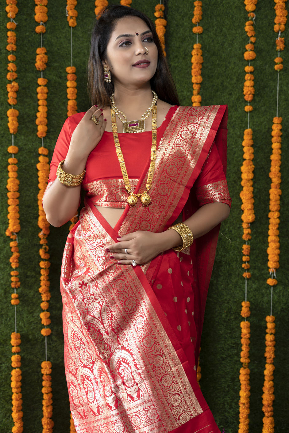 in Red and Maroon with Zari work