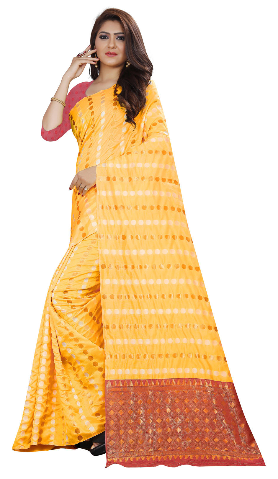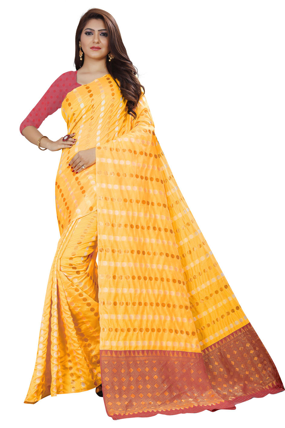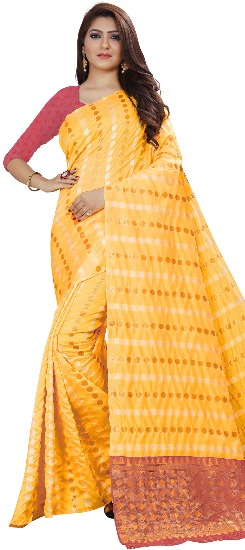 Yellow color Saree in Banarasi Silk fabric with Weaving work