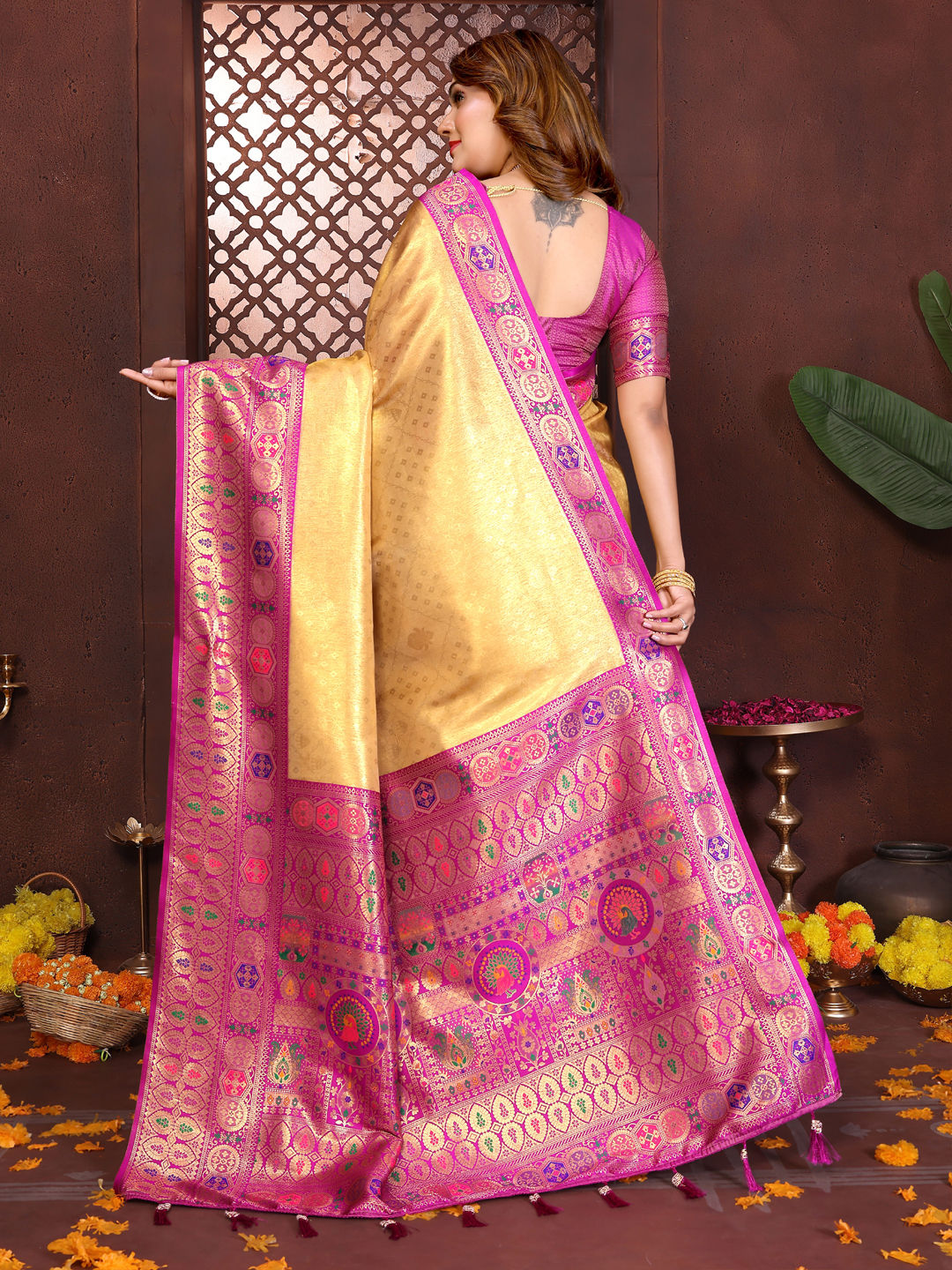 Banarasi Silk Traditional Saree in Yellow with Weaving work