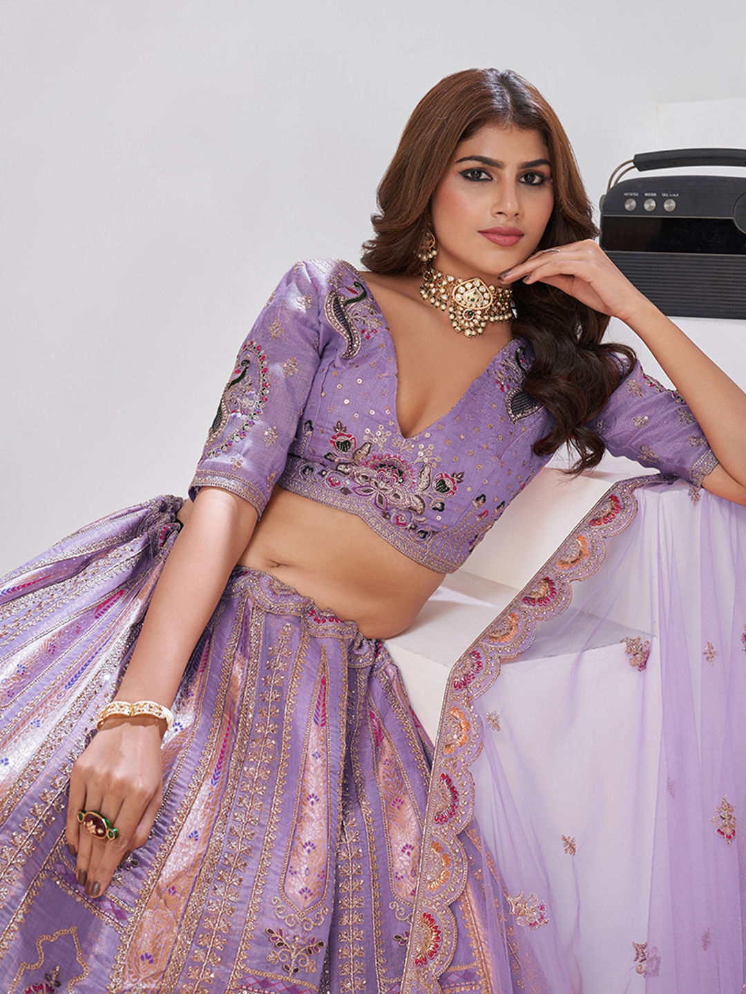 Purple and Violet color Lehenga in Banarasi Silk fabric with Embroidered, Sequence, Thread, Zari work