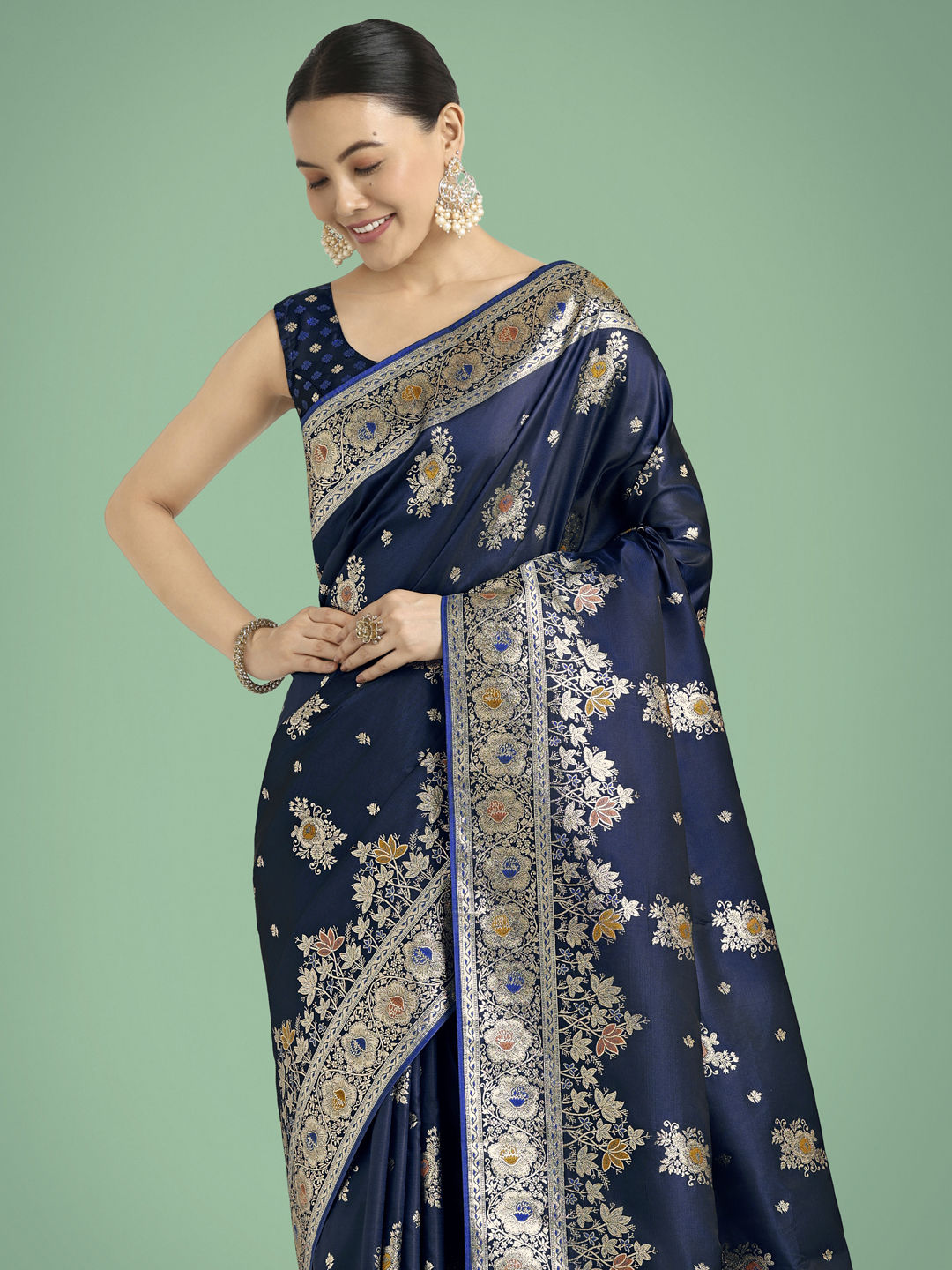 Banarasi Silk Reception Saree in Blue with Weaving work