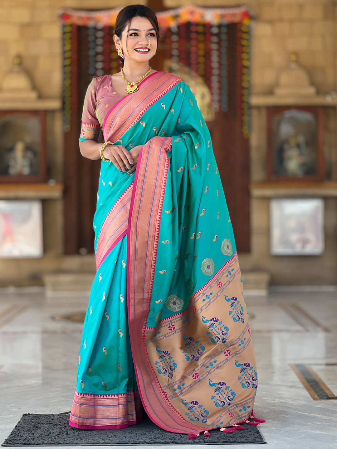 Blue color Saree in Banarasi Silk fabric with Weaving, Zari work