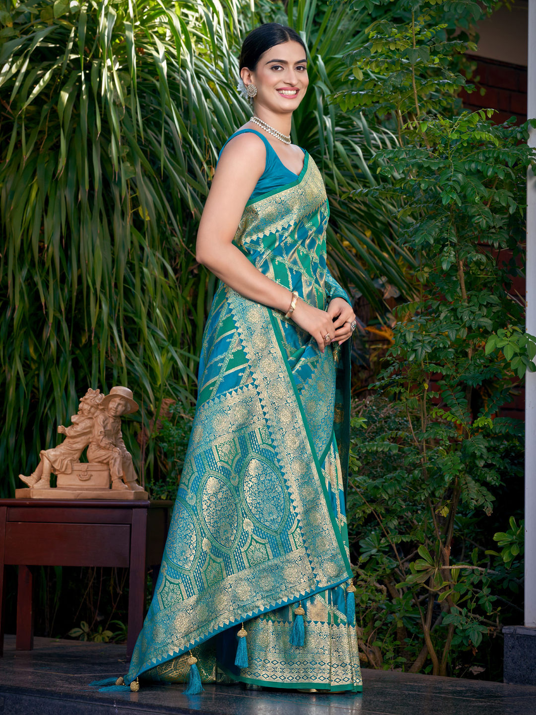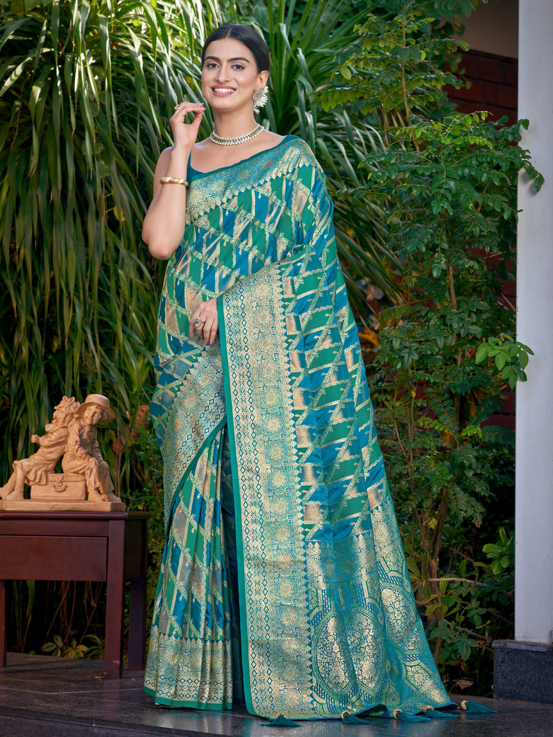 Banarasi Silk Reception Saree in Green with Weaving work