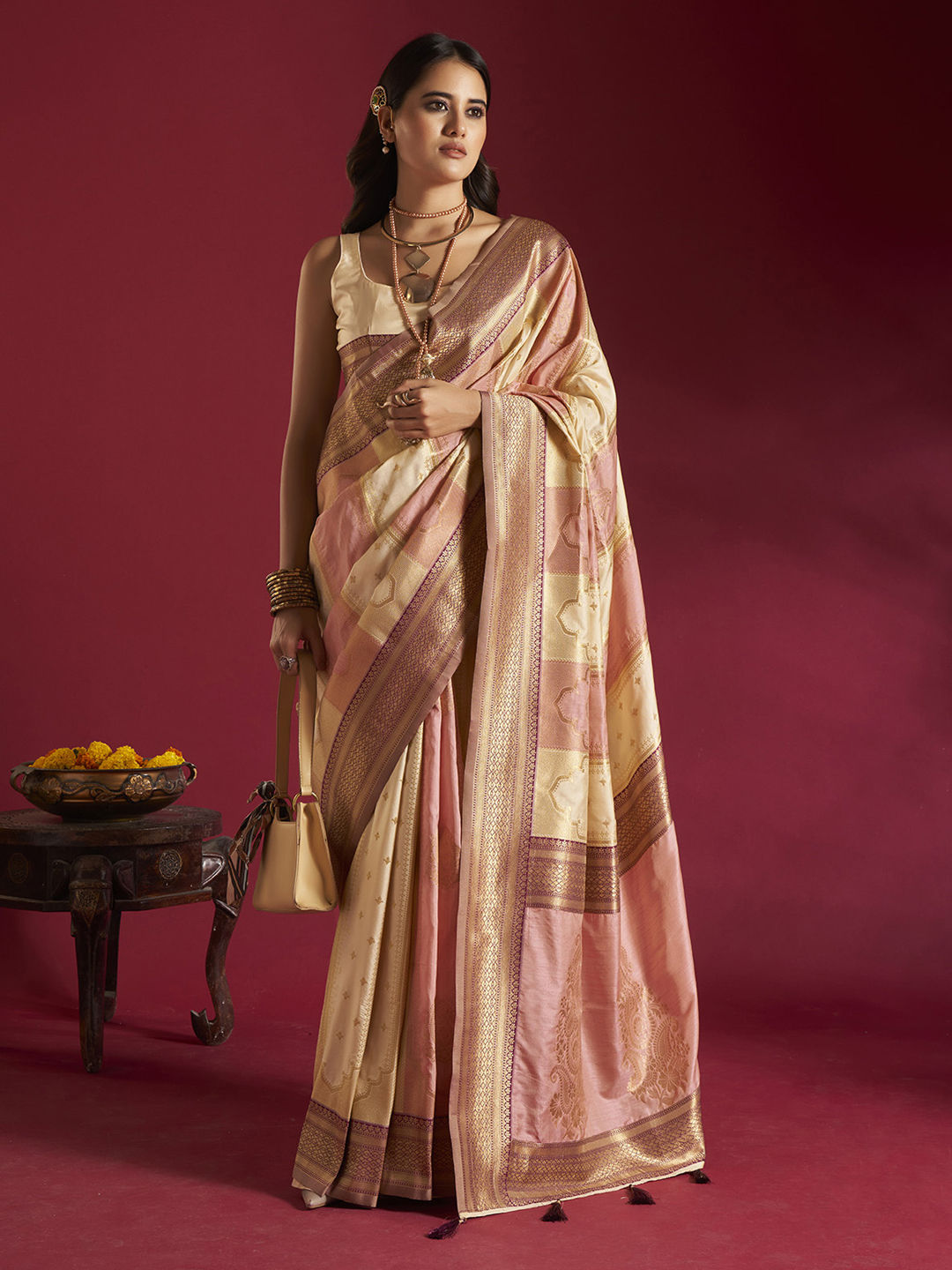 Banarasi Silk Traditional Saree in Beige and Brown with Weaving work