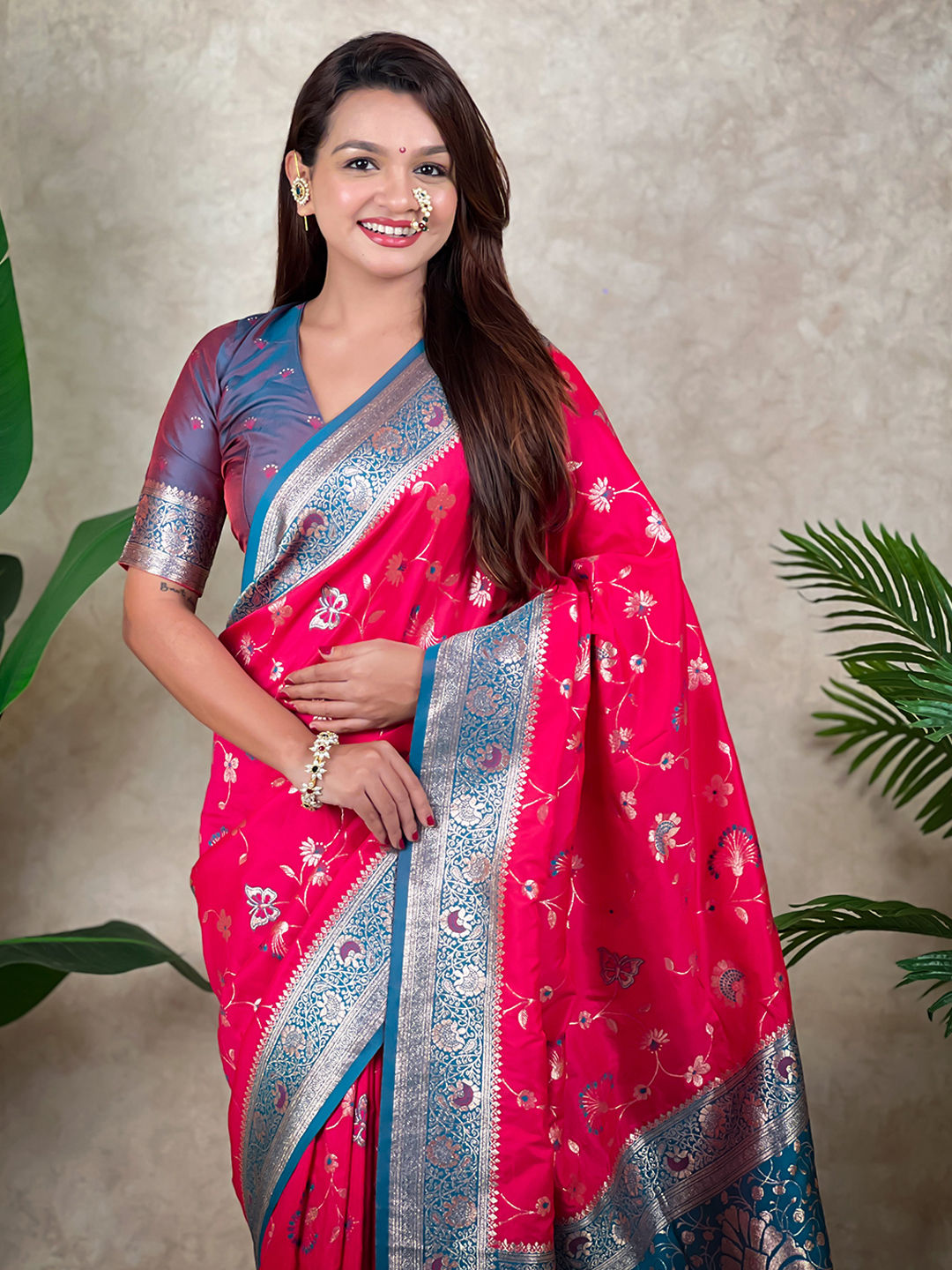 in Pink and Majenta with Weaving work