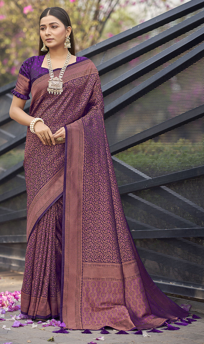 Purple and Violet color Saree in Banarasi Silk fabric with Weaving work
