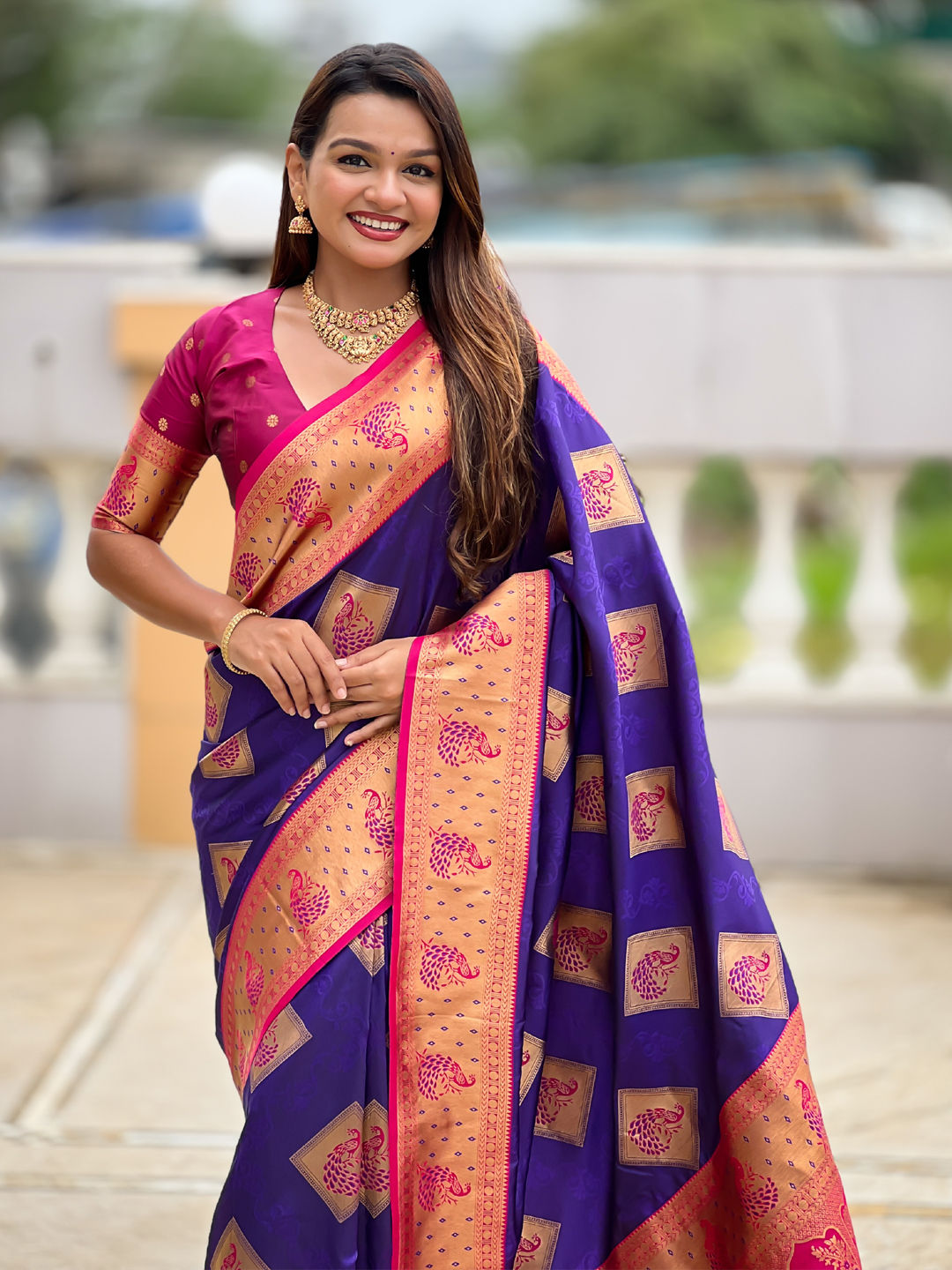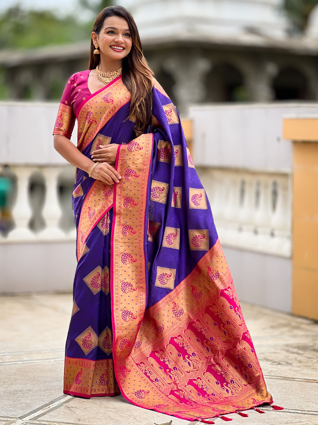 Banarasi Silk Festive Saree in Pink and Majenta with Weaving work