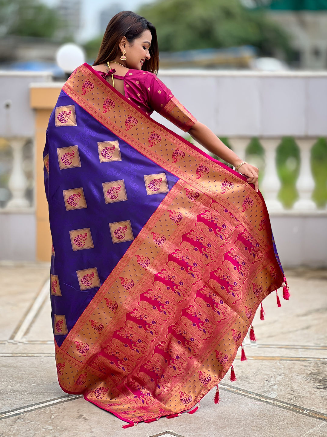 in Purple and Violet with Weaving work