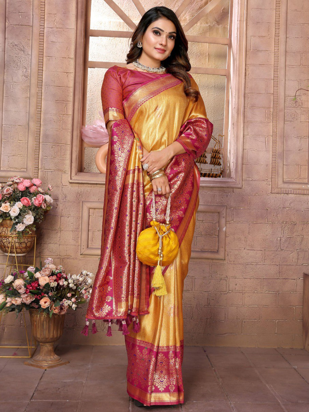 Yellow color Saree in Banarasi Silk fabric with Weaving, Zari work