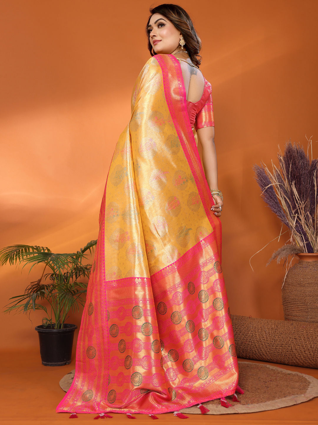 in Yellow with Zari work
