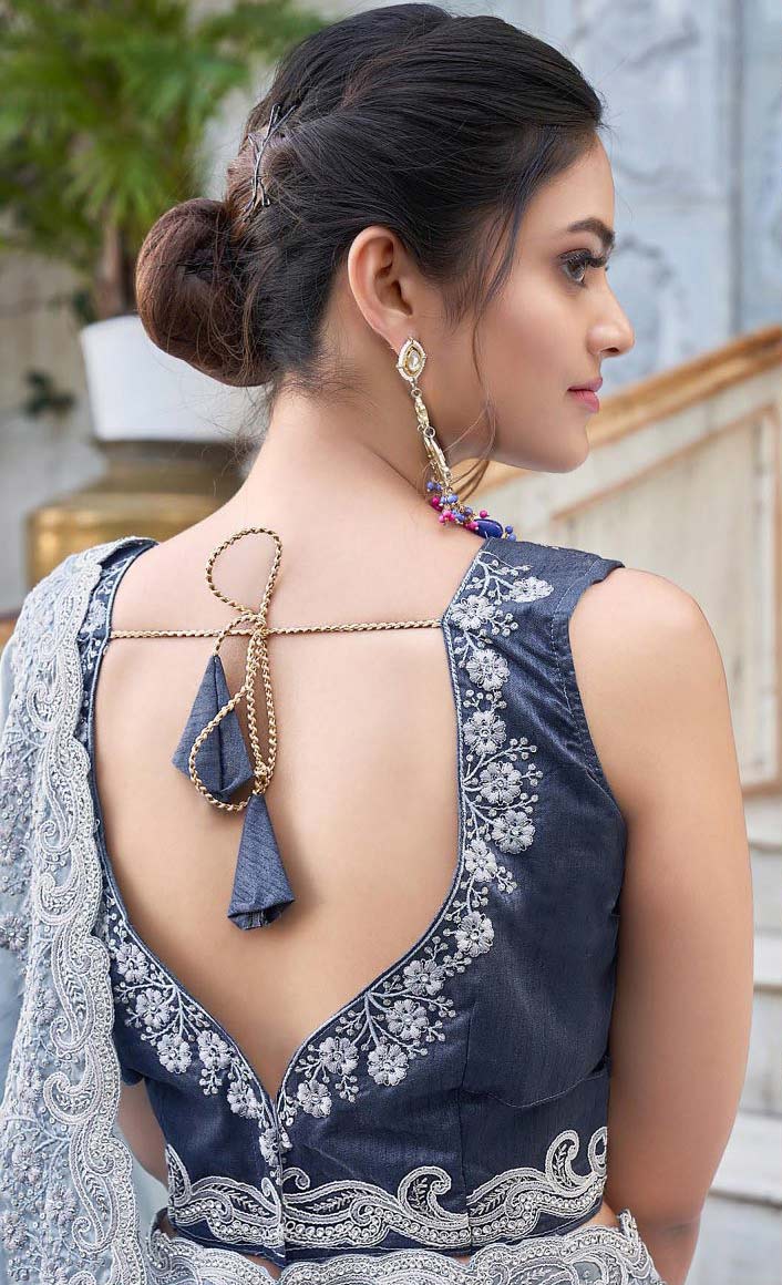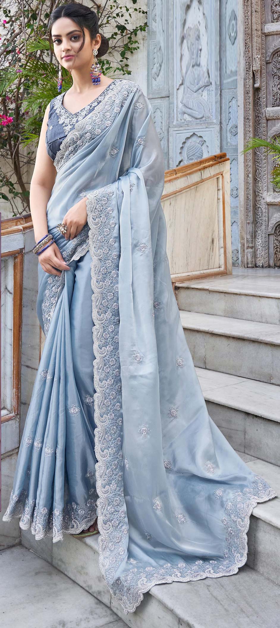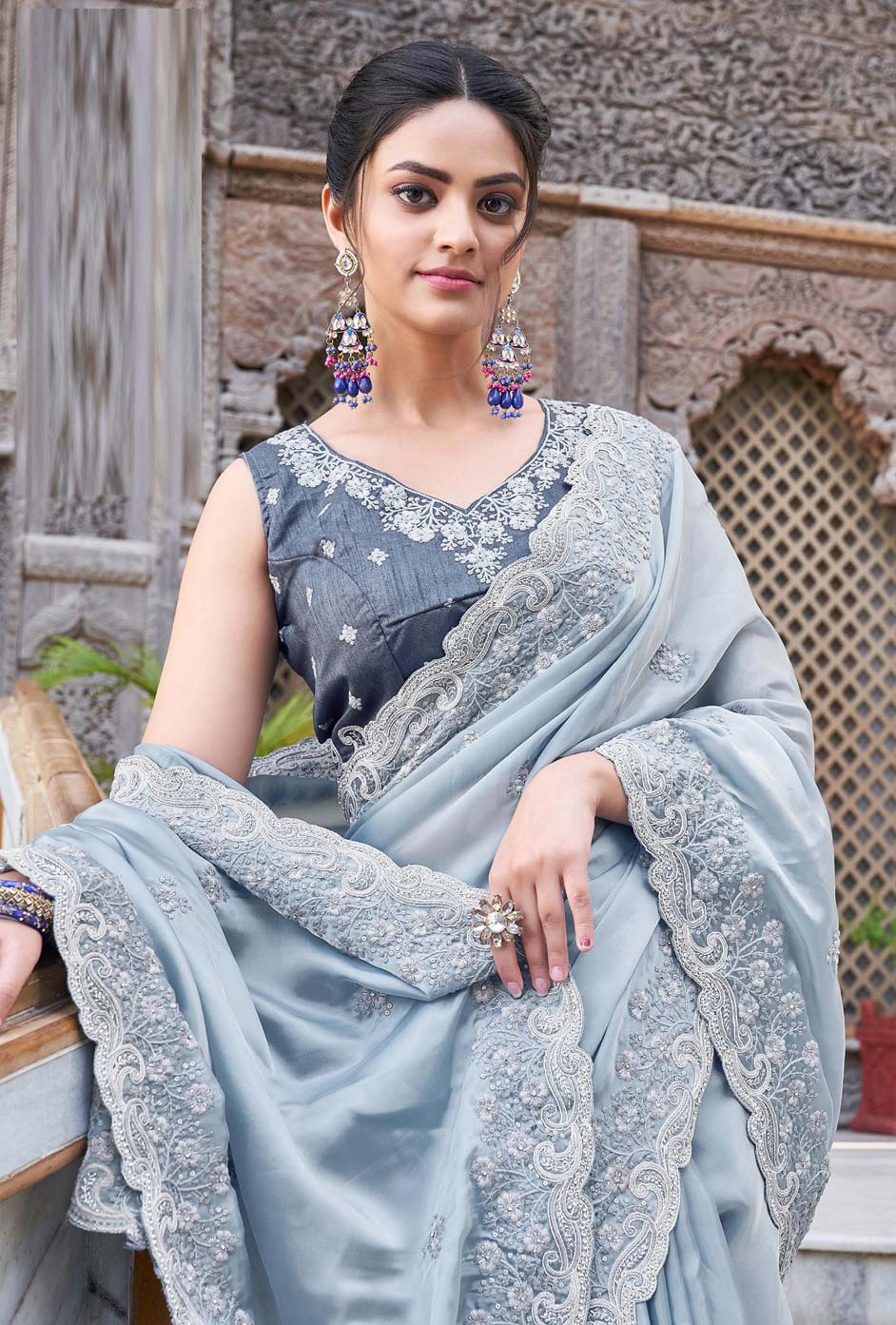 Black and Grey color Saree in Bangalore Silk, Silk fabric with Embroidered, Resham, Sequence, Thread work
