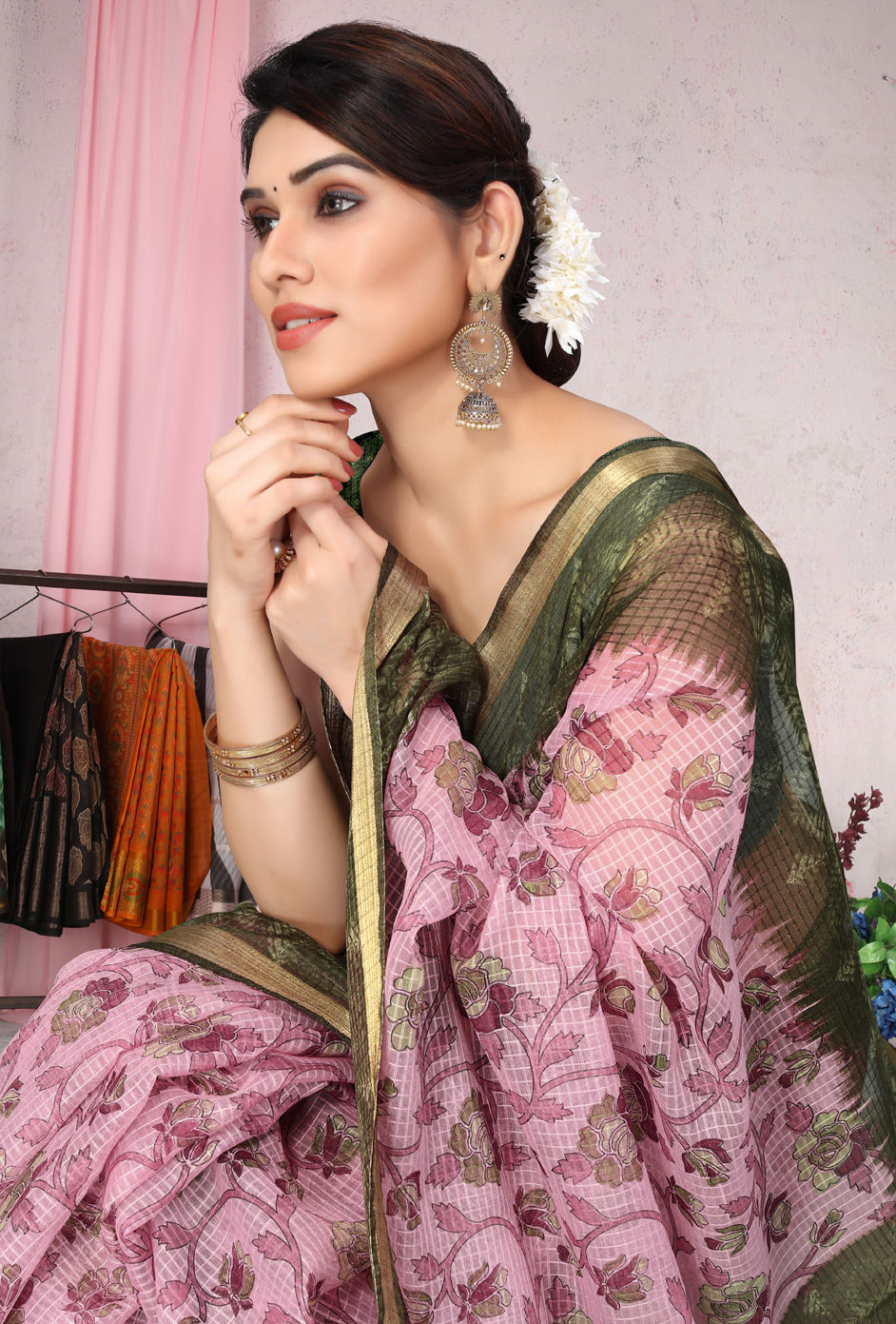 Pink and Majenta color Saree in Blended Cotton fabric with Floral, Printed work