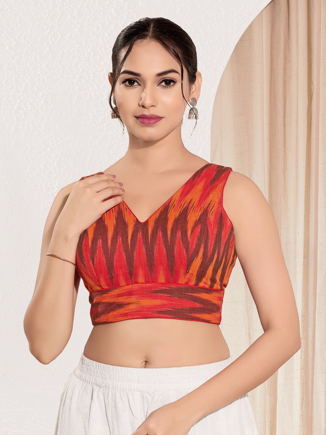 Red and Maroon color Blouse in Blended Cotton fabric with Thread work