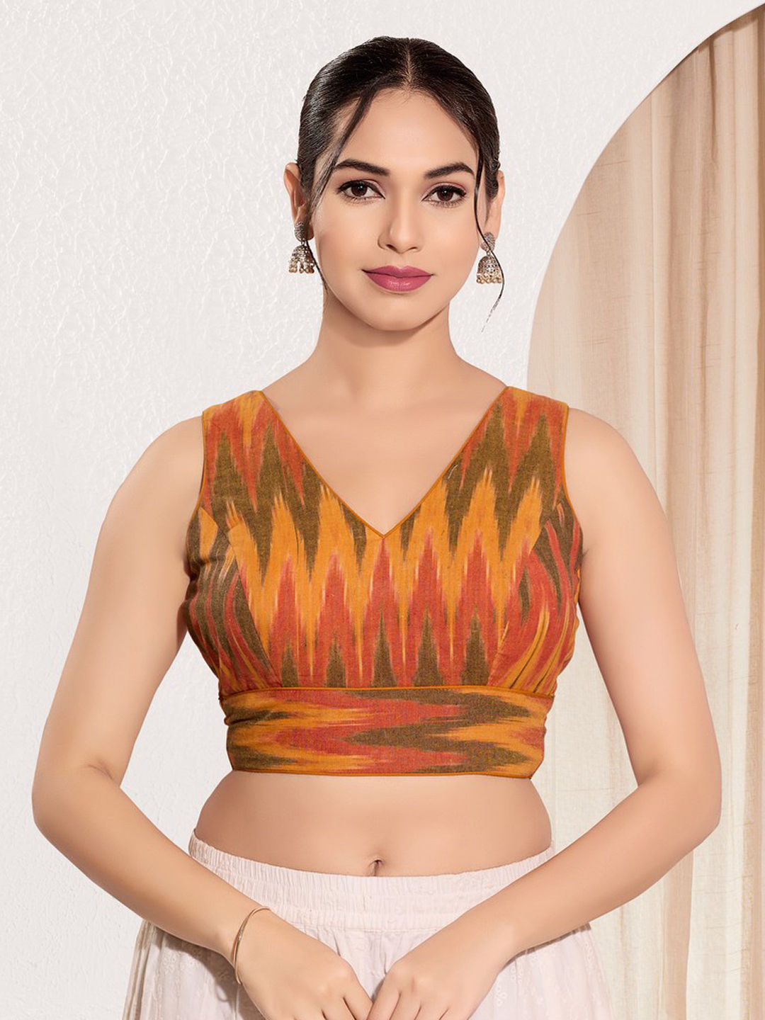 Yellow color Blouse in Blended Cotton fabric with Thread work