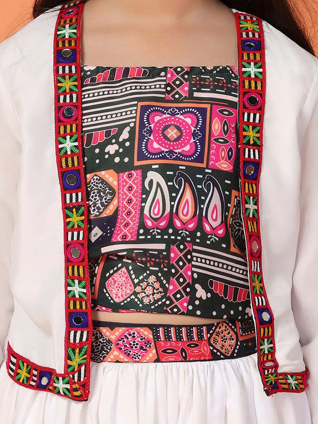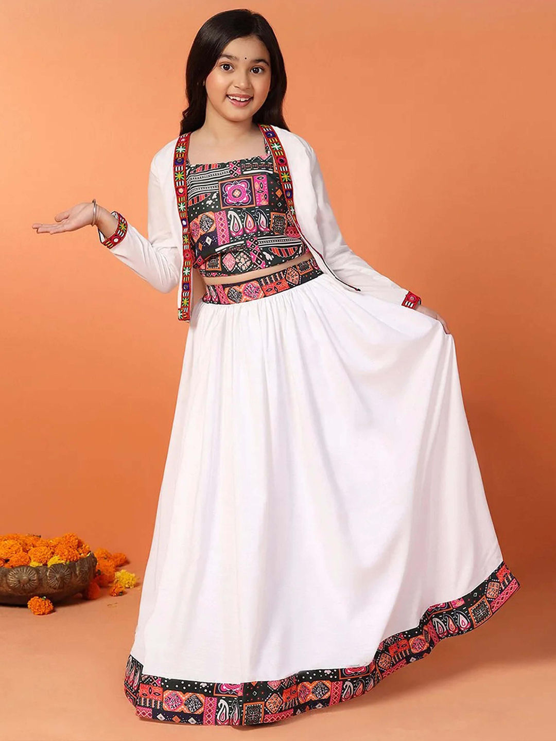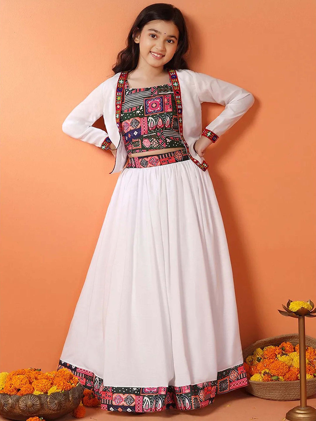 White and Off White color Kids Lehenga in Blended Cotton fabric with Printed work