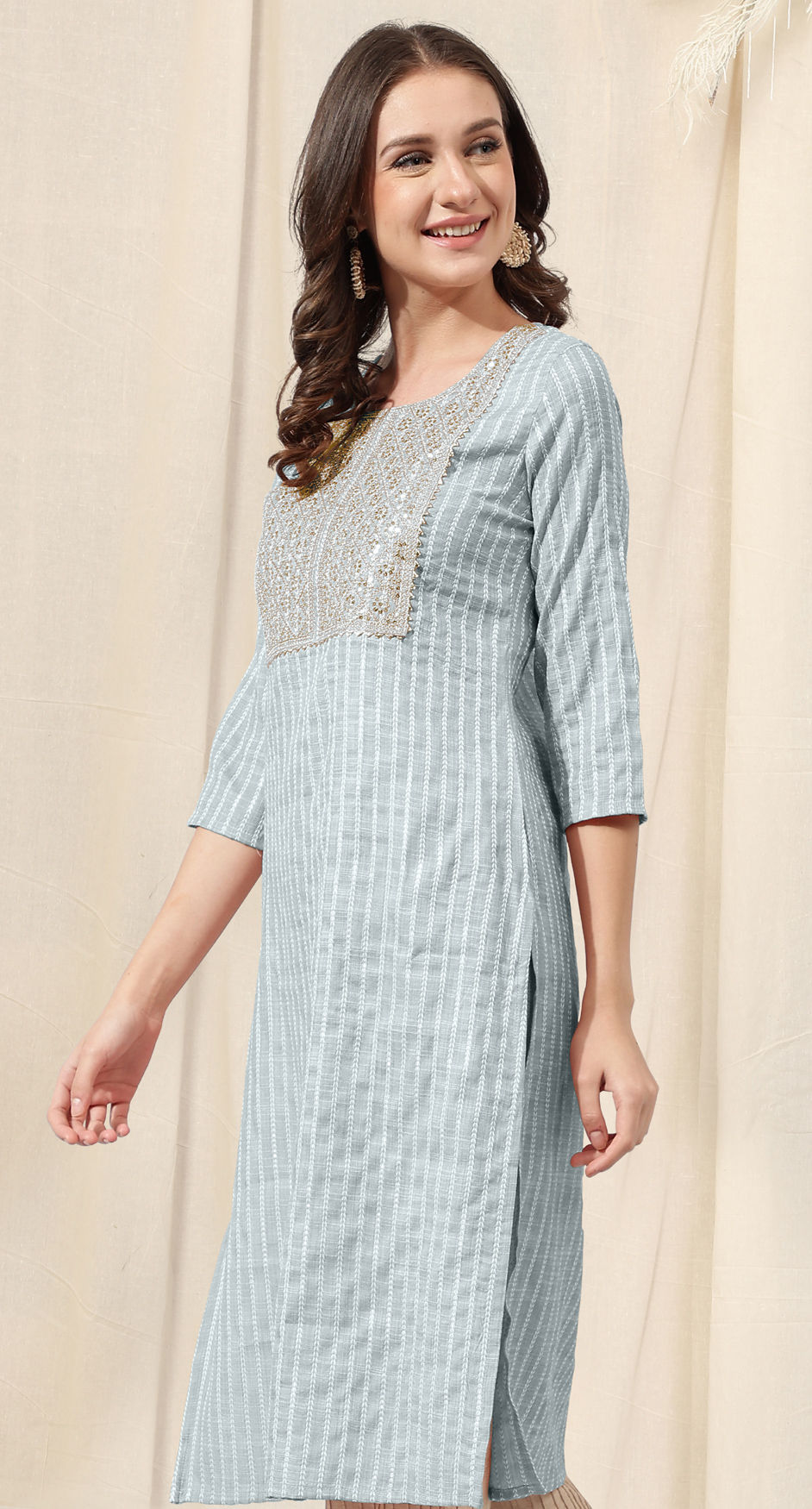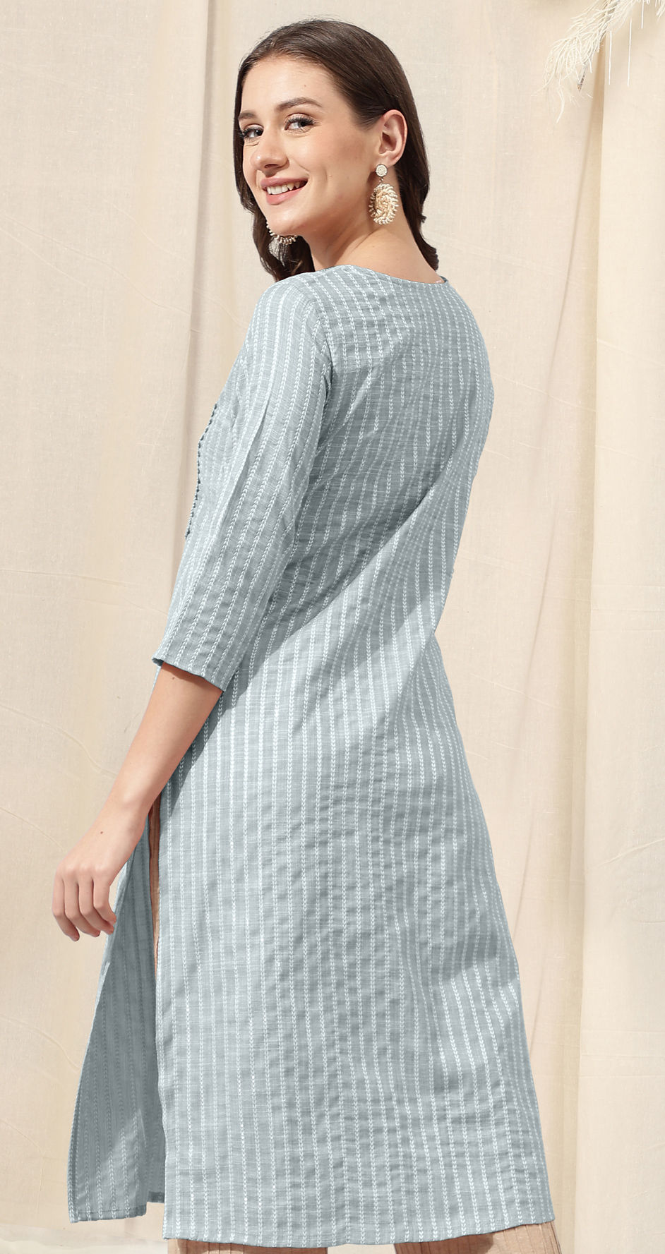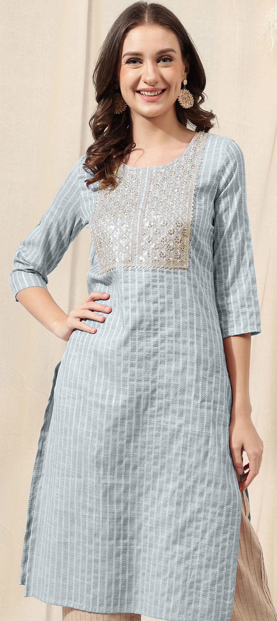 Black and Grey, White and Off White color Kurti in Blended Cotton fabric with Embroidered, Sequence, Thread work