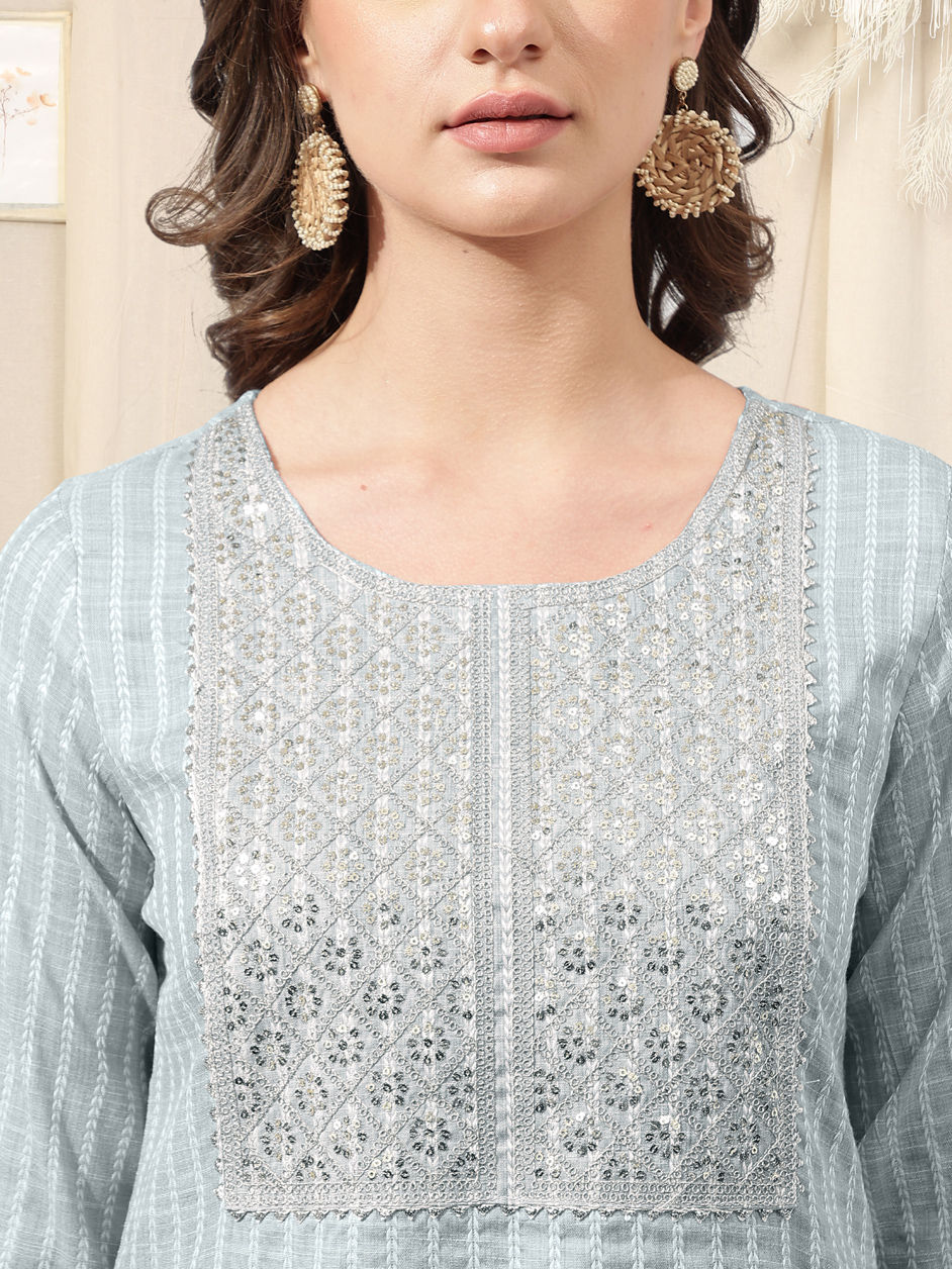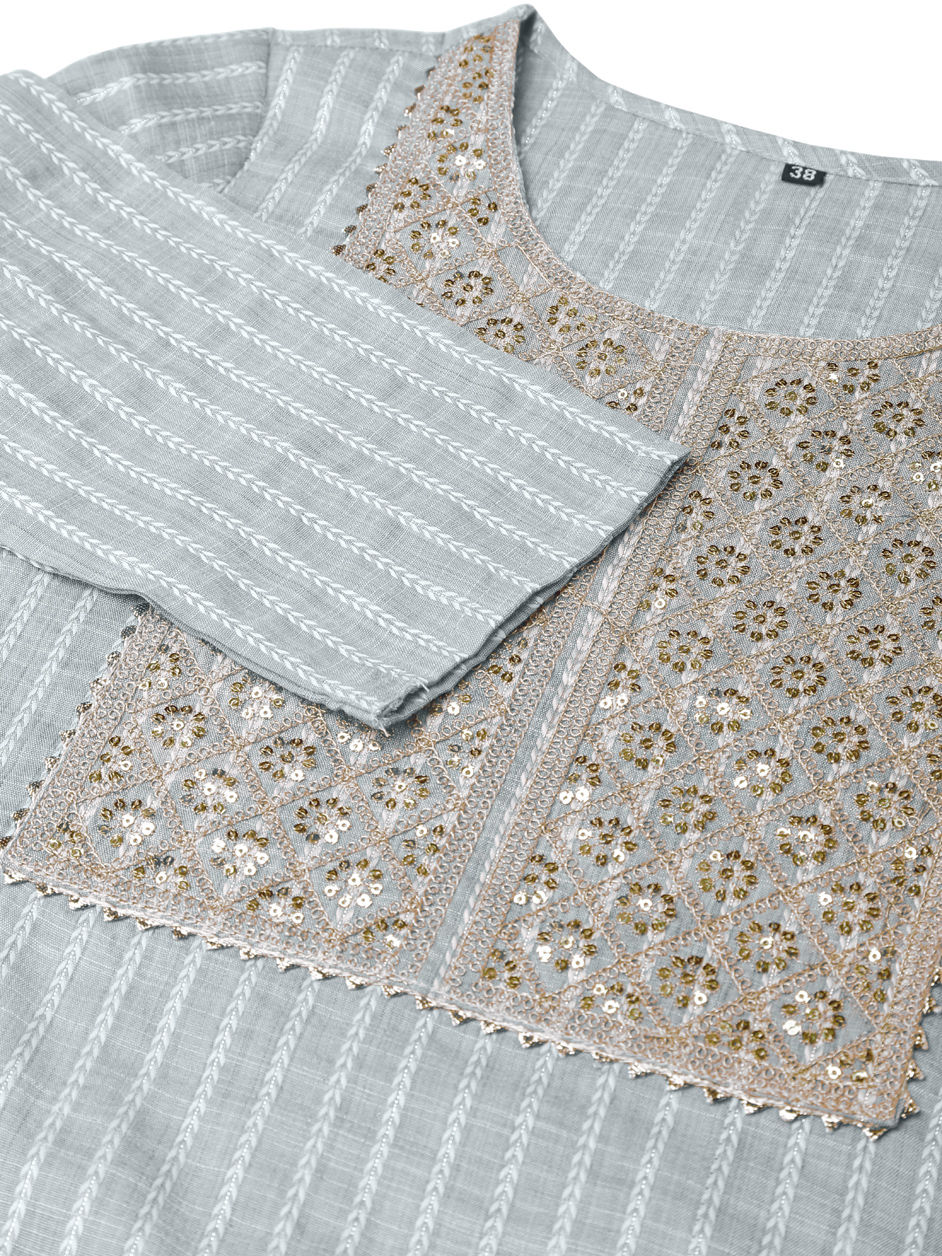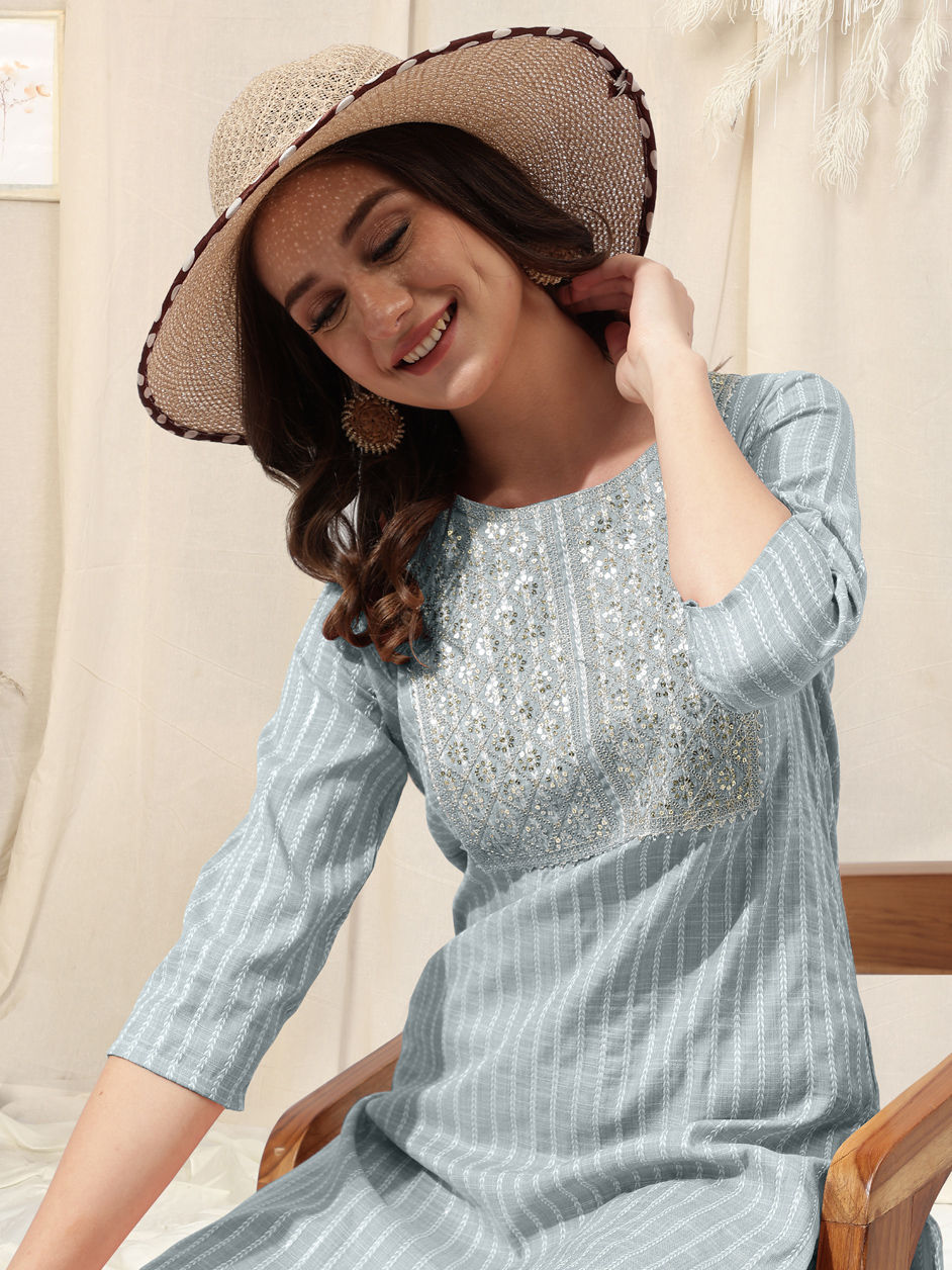 Black and Grey, White and Off White color Kurti in Blended Cotton fabric with Embroidered, Sequence, Thread work